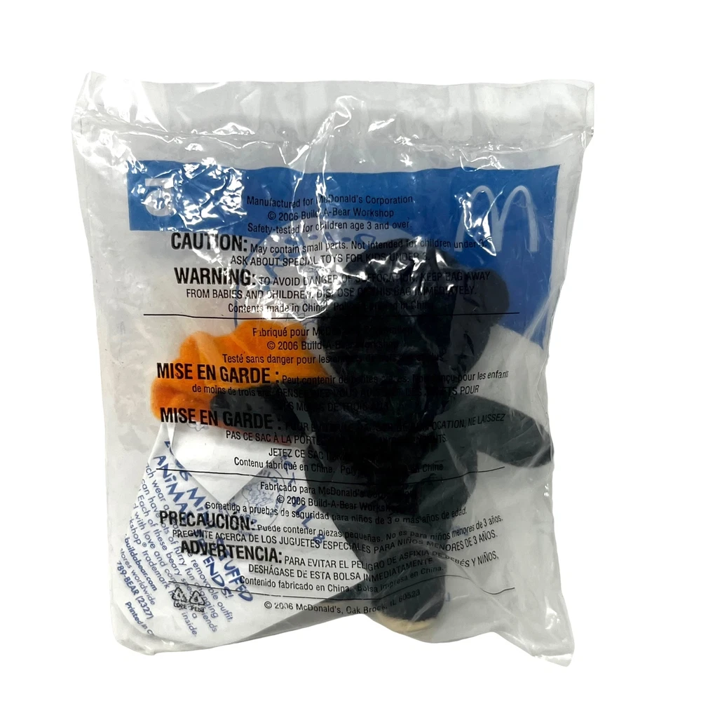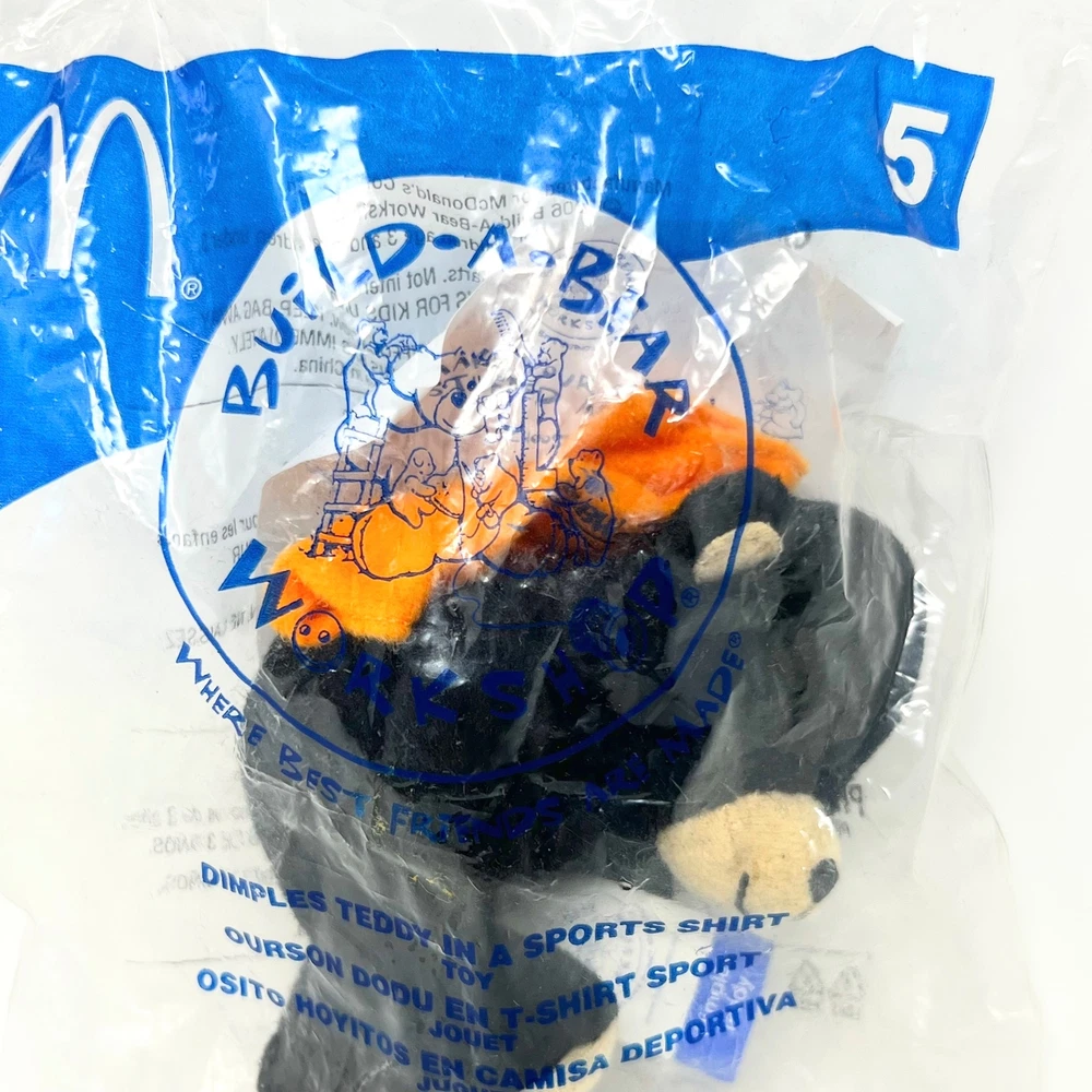 Mcdonald's Happy Meal Toy Build A Bear Dimples Teddy In A Sports Shirt Plush New in Original Packaging Polybag reflects wear due to its age Choking Hazard Ages 4+ Product is intended for the Adult Collector Product may contain Sharp Points, Small Parts, and other elements not suitable for children