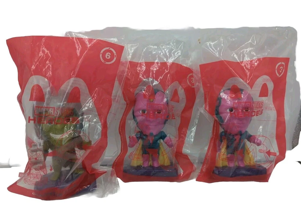 McDonald's Happy Meal Toys Marvel Studios Mixed Lot Of 12 Sealed! There are 3 figures from the 2023 The Marvels series, 2 Captain Marvels and 1 Kree Supermor Dar-Ben. There are 3 figurines from the 2020 Marvel Studios Hero series, 2 Vision and 1 Gladiator Hulk. There are 3 figurines from the 2022 Marvel Studios Black Panther Wakanda Forever series, Battleblack Panther, Namor and Ironheart. There are 3 figurines from the 2020 and 2021 Marvel Eternal series, Ikaris, Kingo and Phastos. All of my items are carefully packed for shipping, no matter their value - $5 items are wrapped with the same care as a $200 item. My goal is to have your purchase arrive safely. Large, heavy and fragile items are harder to use combined shipping with but just ask if you would like to purchase more than one item and I am more than happy to do so if feasible. Measurements are approximate or as close as I can get. Also, the color you see many not be the exact color depending on your computer or phone settings. Unpaid items will result in the buyer being blocked from further purchases. Please remit payment right away so we can get your item shipped out quickly.