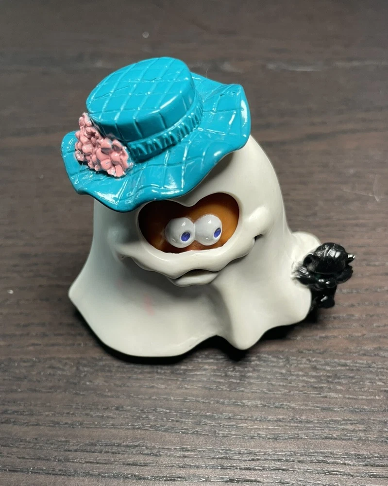 This McDonalds McNugget Buddies 1992 Ghost McBoo Nugget Halloween Happy Meal Toy #5 measures approximately 3” tall. Minor discoloration on white ghost sheet on front - see photos.