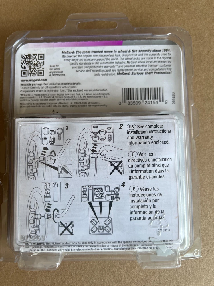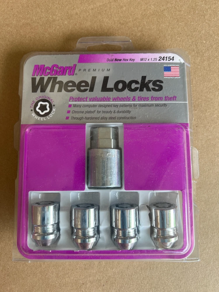 McGard 24154 4 Lug Nut Lock Set – Chrome Finish Enhance your vehicle’s security and style with this genuine McGard 24154 Lug Nut Lock Set. Designed to fit 4-lug wheels, this set is perfect for preventing wheel theft while adding a sleek, chrome finish to your ride. Key Features: Premium Quality: Manufactured by McGard, a trusted name in automotive security. Secure Fit: Designed with an M12 thread and a 1.25 pitch to match your wheel specifications. Optimal Length: Each lug nut lock measures 1.28" in length, ensuring a snug fit. Complete Set: Includes 4 lug nut locks and the matching key for easy installation and removal. Sleek Chrome Finish: Adds a polished look to your wheels while offering reliable anti-theft protection. Why Choose This Lug Nut Lock Set? Enhanced Security: The unique design and matching key make unauthorized removal nearly impossible. Durable Construction: Built to withstand the elements and resist corrosion, ensuring long-lasting performance. Easy Installation: Simply replace your standard lug nuts with these security locks for instant peace of mind. Condition: This McGard 24154 Lug Nut Lock Set is in excellent condition and ready to provide superior security for your vehicle. Whether you’re looking to upgrade your car or replace a lost set, this product is a reliable choice. Compatibility: Ideal for vehicles with 4-lug wheel configurations that match the M12 x 1.25 specifications. Please verify fitment with your vehicle before purchasing. Add this essential security upgrade to your vehicle today and drive with confidence knowing your wheels are protected! Please feel free to ask any questions or request additional photos. Thanks for looking, and happy bidding!