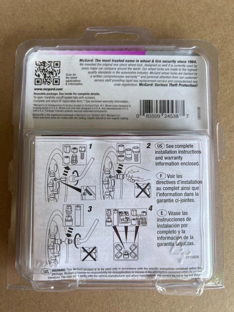 McGard 24538 Chrome Cone Seat Wheel Locks – Set of 5 (1/2" - 20 Thread Size) Elevate your vehicle's security and style with the McGard 24538 Chrome Cone Seat Wheel Locks. Designed with precision and durability in mind, this set of 5 offers superior protection against wheel theft while adding a sleek, chrome finish to your ride. Key Features: Trusted Quality: Manufactured by McGard, a leader in automotive security, ensuring reliable performance and long-lasting durability. Perfect Fit: Specifically engineered for wheels with a 1/2" - 20 thread size, guaranteeing a secure and precise installation. Sleek Chrome Finish: The high-gloss chrome finish not only enhances your vehicle's appearance but also provides excellent resistance to corrosion and wear. Complete Set: This set includes 5 cone seat wheel locks, giving you an extra lock as a spare or replacement, ensuring all your wheels are covered. Enhanced Security: The unique cone seat design helps deter unauthorized removal, offering robust protection against theft. Why Choose McGard 24538 Wheel Locks? Ultimate Protection: Engineered to safeguard your wheels, making theft virtually impossible. Easy Installation: Replace your standard wheel nuts quickly and effortlessly with these high-quality locks. Modern Aesthetic: The polished chrome finish and sleek design add a sophisticated touch to any vehicle. Upgrade your vehicle’s safety and style with the McGard 24538 Chrome Cone Seat Wheel Locks. Add this essential security upgrade to your cart today and drive with confidence! Please feel free to message us with any questions or for additional photos. Thank you for considering our listing, and happy bidding!