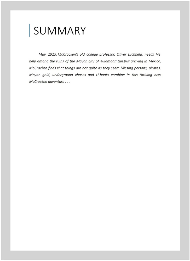 Mccracken and the Lost City, Paperback by Adderley, Mark, ISBN 1500839434, ISBN-13 9781500839437, Like New Used, Free shipping in the US May 1915. McCracken’s old college professor, Oliver Lychfield, needs his help among the ruins of the Mayan city of arriving in Mexico, McCracken finds that things are not quite as they persons, pirates, Mayan gold, underground chases and U-boats combine in this thrilling new McCracken adventure . . .
