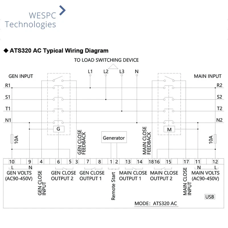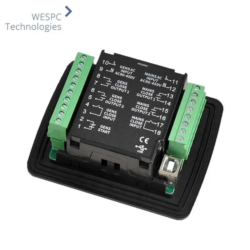 Original Mebay ATS320AC Generator ATS Controller Panel Automatic Transfer Switch Control Module With USB Port Generator Parts The controller is a mains/gens ATS controller, which can automatically or manually control the ATS dual power switch, suitable for the application of one mains and one power generation. The LCD screen can display various faults at the same time. Once the generator does not run normally, it can effectively achieve protection. It can display single-phase power generation voltage, power generation frequency, mains voltage, and mains frequency; the working mode (manual, automatic, test, shutdown) indicates the working status of the ATS switch through the LED indicator; There are Chinese/English interface options, more language can be set according to user's request. All the parameters can be configured through the front face buttons or use programmable interface by USB to adjust via PC. It has compact structure, advanced circuits, simple wiring and high reliability, It can be widely used in various types of power systems.