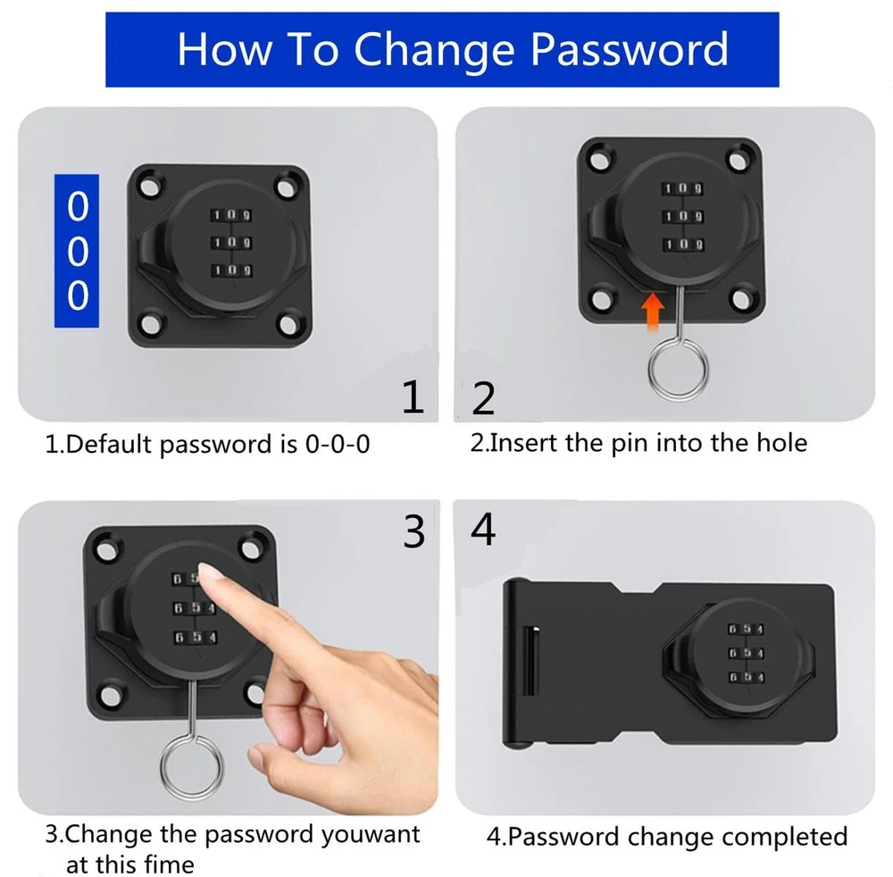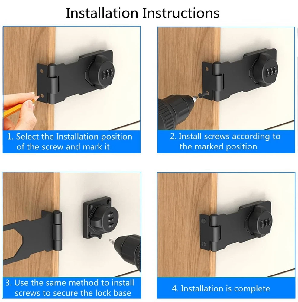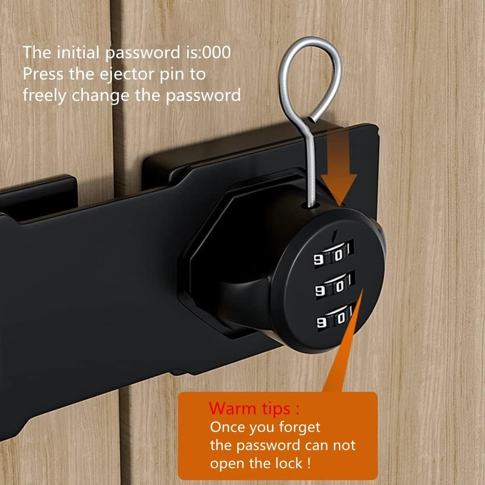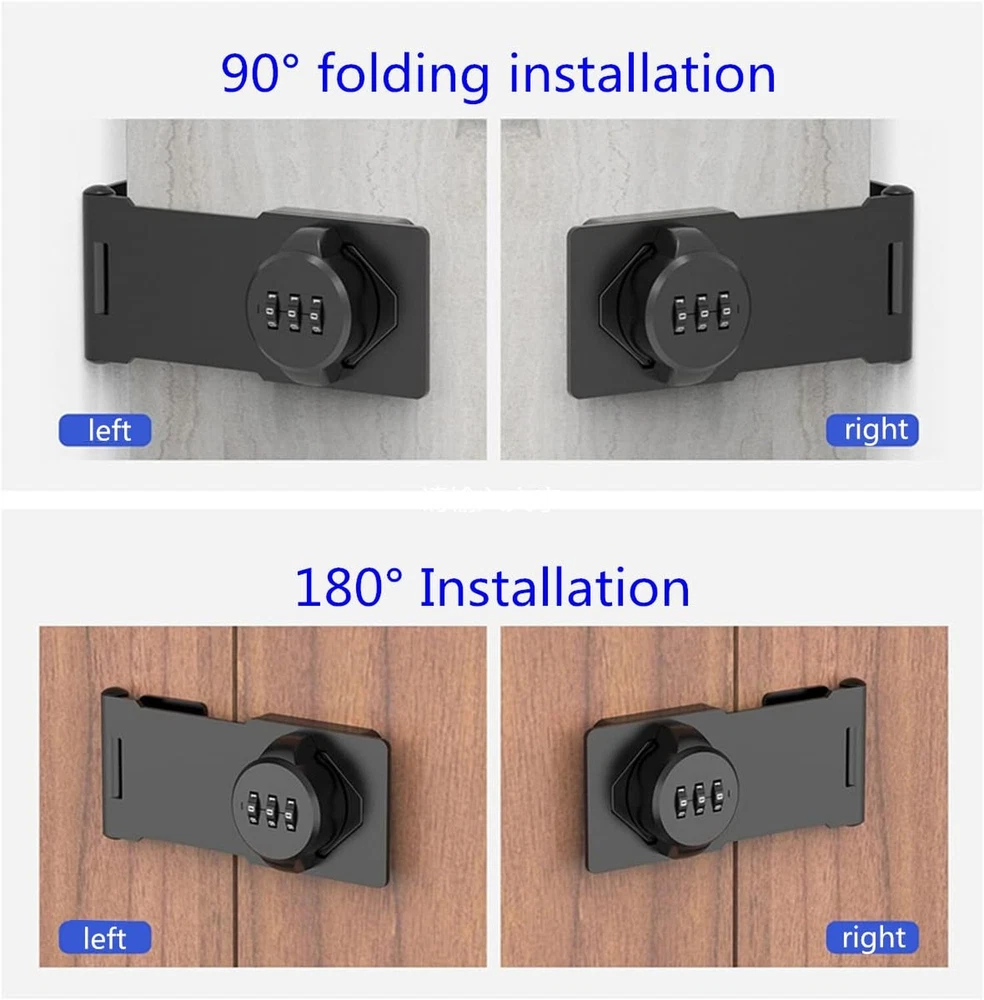 Mechanical Password Rotary Hasp Locks, Door Security Slide Latch Lock for Small Doors, Cabinets, Barn Door, Bathroom, Outdoor, Garage, Garden (Black) Product Details Color: Black Brand: Dachangshund MPN: X01039 UPC: 751342406950 EAN: 0751342406950 Brand: Dachangshund Special Feature: Passcode Unlock Lock Type: Combination Lock Item dimensions L x W x H: 6 x 4 x 2 inches Material: Zinc Brand: Dachangshund Special Feature: Passcode Unlock Lock Type: Combination Lock Item dimensions L x W x H: 6 x 4 x 2 inches Material: Zinc Recommended Uses For Product: Securing doors, gates, sheds, barns, gardens, cabinets, and other items Style: Modern Color: Black Number of Pieces: 1 Included Components: Pin, Screws, Combination Hasp lock Controller Type: Hand Control Shape: Rectangula Control Method: Touch UPC: 751342406950 Model Name: X01039 Manufacturer: Dachangshund Part Number: X01039 Item Weight: 7.7 ounces Product Dimensions: 6 x 4 x 2 inches Country of Origin: China Item model number: X01039 Special Features: Passcode Unlock Batteries Included?: No Batteries Required?: No Date First Available: March 23, 2024 HIGH QUALITY MATERIALS: The 90 sliding barn lock is constructed of solid zinc alloy and coated with multi-layer coating covering the surface, which can effectively isolate oxygen in the air to be corrosion-resistant, ensuring durability and reliability, can be used for a long time. EASY AND FAST INSTALLATION: the door bolt is suitable for left or right installation, and installation at an angle of 90 and 180. Simply fit the door latch lock to your door frame, mark the height and mounting holes and mount to your door jam with the supplied screws. SIMPLE AND QUICK TO USE - the mechanical combination lock only needs a simple password operation, which is more efficient and convenient than traditional key unlocking. In addition, it also solves the problem that the lock cannot be unlocked due to lost keys. WIDELY USED: This 180 password sliding door bolt latch can be used for various doors installation, great use for gate, shed door, barn door, garden, yard, pet doors, cabinet, drawers, gun vault, mailbox, safe box, office file cabinet lock. TOTAL SIZE: 110mm/4.3'' x 46mm/1.81'' x 26mm/1.02'' (L*W*H); Package List: 1* password gate latch, 7* Screws, 1* Tool. Thickened Material This cabinet lock uses thickened zinc alloy material, making it more sturdy and durable. This means it can withstand regular physical attacks, such as impacts, destruction, and drilling, providing more reliable security protection. Secure Anti-Theft The combination of the password lock and reinforced zinc alloy material makes this lock a highly secure and anti-theft product. It can effectively protect your items from theft and intrusion, providing additional security. Whether for home, business, or industrial use, this cabinet lock can provide you with reliable protection. Easy Installation This combination lock is very easy to install, requiring only a screwdriver and drilling holes to secure it onto doors, boxes, or other items. Compared to adhesive-based installation methods, this method is more robust and reliable. Left & Right Universal This password lock can be installed on the left or right side of doors or lids without the need for extra parts or tools. This way, you can choose the installation method that best suits your needs.