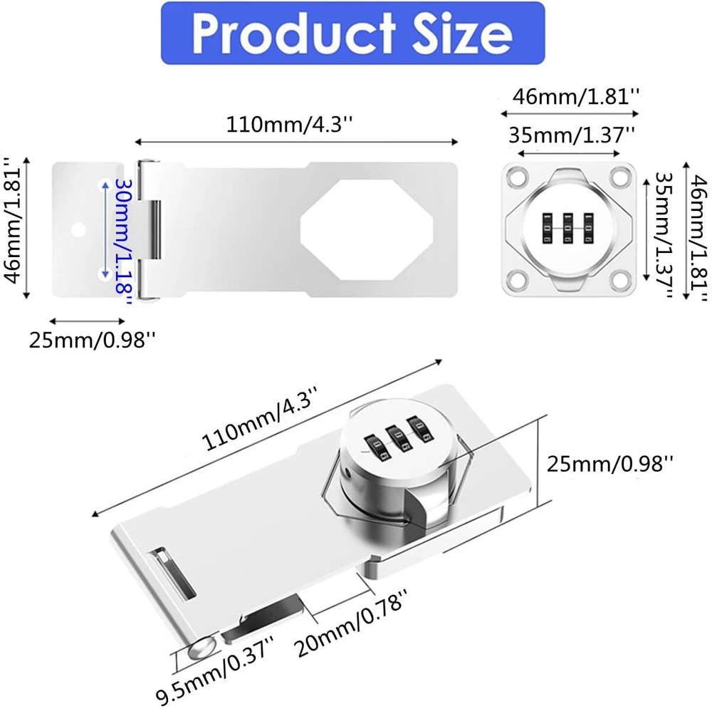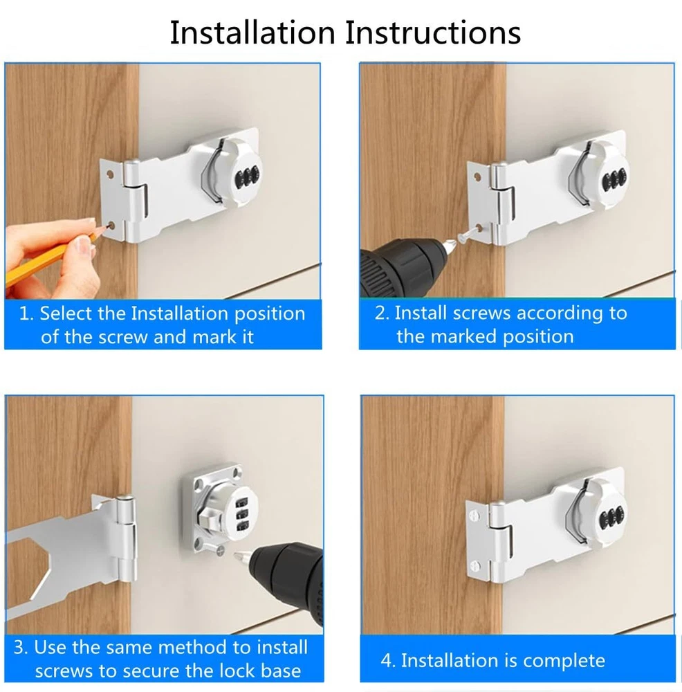 Exclusive Offers Await! Welcome to our stores! We promise you'll be satisfied. Mechanical Password Rotary Hasp Locks, Door Security Slide Latch Lock for Small Doors, Cabinets, Barn Door, Bathroom, Outdoor, Garage, Garden (Silver) Item Details Thickened Material This cabinet lock uses thickened zinc alloy material, making it more sturdy and durable. This means it can withstand regular physical attacks, such as impacts, destruction, and drilling, providing more reliable security protection. Secure Anti-Theft The combination of the password lock and reinforced zinc alloy material makes this lock a highly secure and anti-theft product. It can effectively protect your items from theft and intrusion, providing additional security. Whether for home, business, or industrial use, this cabinet lock can provide you with reliable protection. Easy Installation This combination lock is very easy to install, requiring only a screwdriver and drilling holes to secure it onto doors, boxes, or other items. Compared to adhesive-based installation methods, this method is more robust and reliable. Left & Right Universal This password lock can be installed on the left or right side of doors or lids without the need for extra parts or tools. This way, you can choose the installation method that best suits your needs. Product Features 🔒HIGH QUALITY MATERIALS: The 90° sliding barn lock is constructed of solid zinc alloy and coated with multi-layer coating covering the surface, which can effectively isolate oxygen in the air to be corrosion-resistant, ensuring durability and reliability, can be used for a long time. 🔒EASY AND FAST INSTALLATION: the door bolt is suitable for left or right installation, and installation at an angle of 90° and 180°. Simply fit the door latch lock to your door frame, mark the height and mounting holes and mount to your door jam with the supplied screws. 🔒SIMPLE AND QUICK TO USE - the mechanical combination lock only needs a simple password operation, which is more efficient and convenient than traditional key unlocking. In addition, it also solves the problem that the lock cannot be unlocked due to lost keys. 🔒WIDELY USED: This 180° password sliding door bolt latch can be used for various doors installation, great use for gate, shed door, barn door, garden, yard, pet doors, cabinet, drawers, gun vault, mailbox, safe box, office file cabinet lock. 🔒TOTAL SIZE: 110mm/4.3'' x 46mm/1.81'' x 26mm/1.02'' (L*W*H); Package List: 1* password gate latch, 7* Screws, 1* Tool. Payment Information ⦿ All payments are handled securely through eBay. ⦿ We accept PayPal and all major credit cards. ⦿ Payment must be completed immediately after purchase. ⦿ If there are any issues with the payment, please contact our support team for assistance. Shipping Details ⦿ We only ship to the address provided at checkout. Please verify your address before completing your purchase. ⦿ Orders are processed within 1 business day (excluding weekends and holidays). ⦿ Delivery usually takes 3-5 business days. ⦿ We use trusted shipping services such as UPS, FedEx, and USPS. ⦿ Shipping is available only within the contiguous United States. We do not ship to Alaska, Hawaii, Puerto Rico, or PO Boxes. ⦿ If there are any shipping delays, please contact us for support. Return Policy ⦿ We offer a 30-day return policy for your peace of mind. ⦿ If you are not satisfied with your purchase, you can return it within 30 days for a full refund. ⦿ Please contact us to obtain the return address before sending back any items. ⦿ Returns must be in their original condition and packaging.
