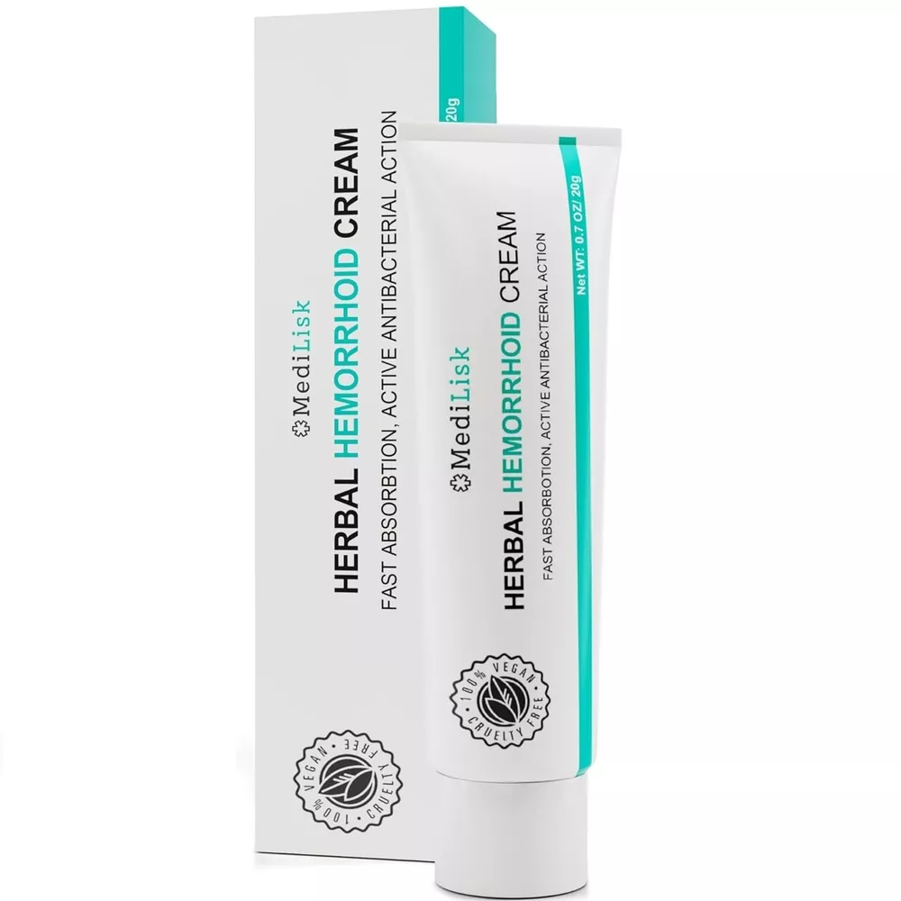 Experience the calming comfort of MediLisk Herbal Cream, formulated to provide temporary relief from pain, burning, itching, and discomfort associated with hemorrhoids. Our carefully crafted blend of natural ingredients works to soothe and alleviate symptoms, promoting a sense of well-being.
