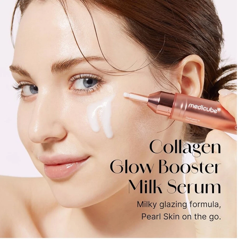 Medicube Collagen Glow Booster Milk Serum - Twist and Click - Radiance and Hydration with Niacinamide , Milk Protein Extract, Hydrolyzed Collagen . Illuminates and Frim Skin. Milky glazing formula : Featured on the TODAY SHOW, our top-rated serum combines advanced skincare technology with luxurious ingredients to enhance your natural radiance. This innovative serum boosts collagen production, hydrates deeply, and leaves your skin looking youthful and luminous. Elevate your skincare routine with the product everyone is talking about on national television. Innovative Twist & Click Packaging - Features a twist-push button mechanism and airless container to ensure the perfect amount of serum is dispensed and stays fresh with every use. Deep Hydration - Formulated with Niacinamide, Milk Protein Extract, and Hydrolyzed Collagen to deliver intense hydration, leaving your skin cushiony and supple. Premium Ingredients - Includes Ceramide NP to maintain the skin barrier, Adenosine for reducing fine lines, and Hexapeptide-2 for illuminating and evening out skin tone. Easy Application - Apply morning and night after cleansing and toning. Use one pump for the entire face and neck, gently massaging in for opti