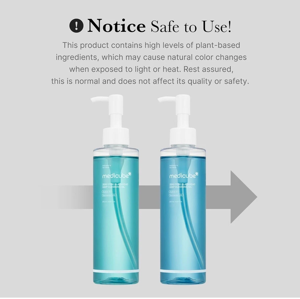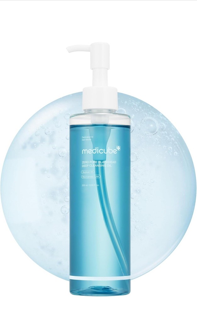 Medicube Zero Pore Blackhead Deep Cleansing Oil 205 ml. All-in-One Deep Cleansing Oil: Dissolves sebum, blackheads, and makeup in one step. Specialized ingredients target sebum and help remove hardened impurities within the pores Daily Deep Cleansing Oil for All Skin Types: Our mild cleansing oil suitable for daily use. Effectively cleanses makeup and sunscreen while leaving the skin moisturized and refreshed Gentle Blue Deep Cleansing Oil: Formulated with 90.6% of 11 plant-based oils, providing a mild yet effective cleansing experience, even for sensitive areas like the delicate skin around the eyes Refreshing Oil-to-Milk Cleansing Oil: Transforms into a milky texture when emulsified. Rolls smoothly on the skin, quickly emulsifies, and leaves no residue, offering a fresh and lightweight finish How to Double Cleanse: Step 1) Use Zero Cleansing Oil to remove makeup and impurities. Step 2) Follow with Zero Foam Cleanser for a refreshed and clean finish.