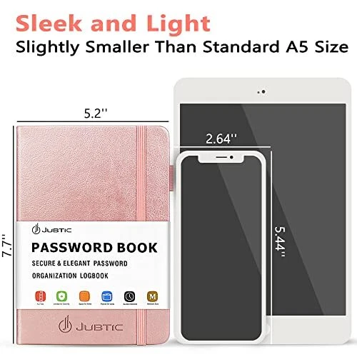 JUBTIC Password Book with Alphabetical Tabs. Medium Size Password Notebook for Internet Website Address Log in Details. Hardcover Password Journal & Organizer for Home Office, Rose Gold NEVER FORGET YOUR PASSWORDS AGAIN: This password notebook allows you to store passwords, accounts & login details in one place. another section is used to record important notes such as birthdays, addresses, customer service phone numbers, software licenses, and even recent order histories. UNIQUE DESIGN & EASY TO USE: Password book with a-z tabs to record & find your passwords fast. 4 entries per page with large print and extra space for notes and hints. you may never need to change the password book again! PERFECT MEDIUM SIZE & QUALITY: The password keeper measures 5.2*7.7 inches and features a high-quality leatherette hardcover, pen loop, inner pocket, and ribbon bookmark for easy to use. KEEP IT IN A SAFE PLACE: Although from the outside, this password notebook organizer looks like one of those writing journals, so no one will know it is a password book. However, we still recommend keeping the internet password book in a secure place, such as a locked drawer or a bookshelf full of books. GREAT GIFT FOR PARTNERS OR SENIORS: You can buy these password books for your partner and parents as birthday or Christmas gifts, easily manage and organize all your passwords without the need to remember complicated synchronized bank payment passwords. Shipping We offer FREE shipping on all orders! We ship within Three business days of payment, usually sooner. We use a selection of shipping services such as UPS, FedEx, USPS etc. We only ship to the lower 48 states, no APO/FPO addresses or PO Boxes allowed. Local pickups and combined shipping options are not provided at this time. International buyers – please note: Import duties, taxes, and charges aren't included in the item price or postage cost. These charges are the buyer's responsibility. Please check with your country's customs office to determine what these additional costs will be prior to bidding or buying. Order Cancellation Policy * Order Cancellation Policy ** You can return a product for up to 30 days from the date you purchased it. 1. The seller reserves the right to cancel the special case only due to eBay cancellation fee. 2. The decision of seller is the final. 3. The seller will respond to the cancellation request within 2 business days. Please wait for the result of cancellation. 4. In case the cancellation is not completed by some reasons, the buyer can follow the options below to get the refund. 4.1 The buyer can reject the item when it arrives. 4.2 The buyer can send the item back to the seller within 30 days If the buyer receives item (USA Shipment ONLY). The seller will provide the FREE return label to the buyer when the buyer opens " Return Item" case on eBay by using the reason as "Change my mind" ONLY. 5. When buyer has placed the order. The order will be processed and completed by automatic warehouse system within 5 minutes. In case that buyer sends the cancellation request after 5 minutes of placing the order, the request will be rejected. **Sending direct message to cancel the order is not allowed for every case.* Return Policy - If buyer would like to return the items for refund or replacement, please CONTACT SELLER to receive the free return label from seller. The refund or replacement will be processed with the tracking number of return label which is provided by seller only. The other ways of return which are not approved by seller will not be processed for the refund or replacement. Return You can return a product for up to 30 days from the date you purchased it. Any product you return must be in the same condition you received it and in the original packaging. Please keep the receipt. Payment We accept payment by any of the following methods: eBay Payments Please pay as soon as possible after winning an auction, as that will allow us to post your item to you sooner! Feedback Customer satisfaction is very important to us. If you have any problem with your order, please contact us and we will do our best to make you satisfied. Contact Us If you have any queries, please contact us via ebay. We usually respond within 24 hours on weekdays. Please visit our eBay store to check out other items for sale! Thank you for shopping at our store.