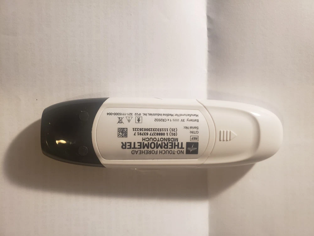Provides for easy interpretation of results using the thermometer's colored result indicators; LCD turns red for a fever, turns green for a normal result, and turns blue while in progress Approved for use in both clinical and home settings -⠀Please note: forehead readings are typically 0.5 to 1 degree lower than oral equivalents because the forehead and oral cavity have naturally different temperatures Medline Infrared No-Touch Digital Forehead Thermometer By Medline