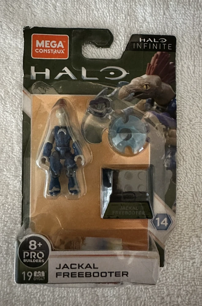 The Mega Construx HALO Jackal Freebooter Mini Figure Series 14 is a building toy set featuring a mini figure character from the Halo universe. This set is part of the Halo product line by Construx and is compatible with Mega Construx blocks. It comes in a blister pack packaging and is suitable for ages 8 and up. The Jackal Freebooter character is from the Halo series and was released in 2020 as part of Series 14 of the mini figures collection.
