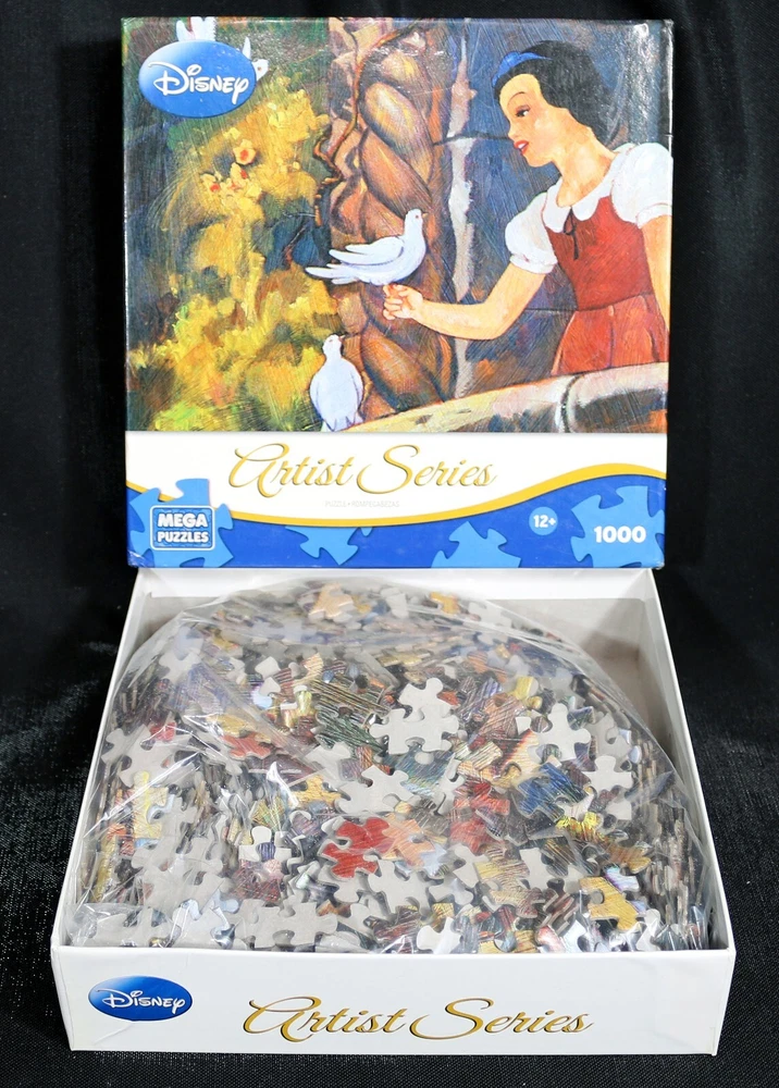 This MEGA Puzzles Artist Series Disney "Snow White On The Balcony" puzzle is a must-have for any Disney fan or puzzle enthusiast. With 1000 pieces, this puzzle features a colorful and detailed image of Snow White on her balcony, with two of her dove friends. The puzzle is made of high-quality cardboard and features interlocking pieces for a complete and enjoyable puzzle-solving experience. The puzzle is recommended for ages 12 and up, making it a great challenge for both kids and adults. It was manufactured in China in 2011 and is part of the Disney Character Family. This puzzle is perfect for those who enjoy contemporary puzzles and is a great addition to any collection. Doing puzzles has some hidden benefits Excellent qualities : Cultivate concentration, patience, and temper your will Movement development : Train hand-eye coordination and precise small movements Spatial intelligence : Improve visual discrimination of colors and shapes Critical thinking ability : Understand the relationship between parts and the whole, and draw inferences from one example to explore the future Relaxes your mind : Relieve work pressure and release yourself Brain development : Enhance memory and may help prevent or slow brain degeneration Puzzle pieces are all bagged. Each item we ship is carefully packaged to prevent any damage and is shipped immediately with tracking. Anticipated Benefits of Puzzles for Children Overcoming attention deficit Strengthening visual memory Improving problem solving skills Strengthening hand-eye coordination Improve fine motor skills Improve gross motor skills Shape recognition ability Gain the ability of setting goals Learning patience