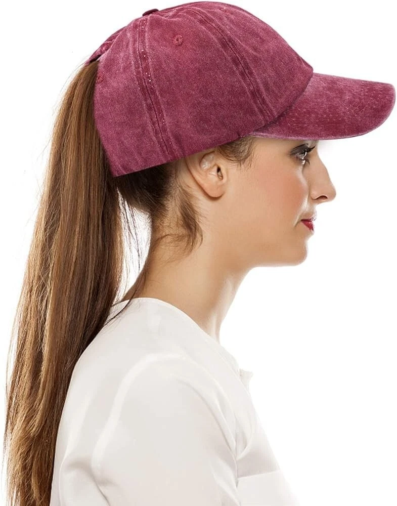 Nicely ponytail hole designed-Ponytail rests very comfortably in the designated hole,looks so cute.Retro ponytail baseball cap perfect for a high ponytail or bun and other lovely hairstyles, feminine and great alternative. the extra hole is really cute, it is not weird if you are not wearing a pony tail 3 Pack super save -Economical dad hats bundle,versatile three colors including black, blue, burgundy , meet your different needs, simple, solid color is great to match many styles of clothes, go out in any color you want Adjustable size-One size fits most,fashionable ponytail baseball hat adjustable metal closure provides a flexible fit. Also fits for Women, ladies and teens.great idea for mother’s day//birthday/Christmas gift for your family and friends Washed cotton material -Vintage,classic and timeless style. 100% cotton hat, well made and durable,super light and airy. with 6 air holes, breathable, comfortably all day. Low profile, unconstructed baseball hat allow you iron on your personality patch Suit for vatious activities-Great for all seasons and good for exercises such as running, walking, cycling, golfing ,hiking, garden work and daily wear, going out to work, attending baseball games, just so comfy and versatile Do you want as many as different colors hat to match your dress? MEINICY cotton baseball cap bundle is your best choice! 3 Pack affordable dad hats Excellent quality and reasonable price, the price that will make your heart beat 3 Colors Choose different colors and match different clothes at will Good quality Pure cotton material, skin-friendly experience,soft,comfortable Adjustable size Adjust at will to meet the needs of different sizes Sun block Protect you from UV damage and restore healthy skin Good gift It is a great choice as a birthday/Christmas gift for your mom,dad,son,daughter or friends Package Include: 3 x Baseball caps
