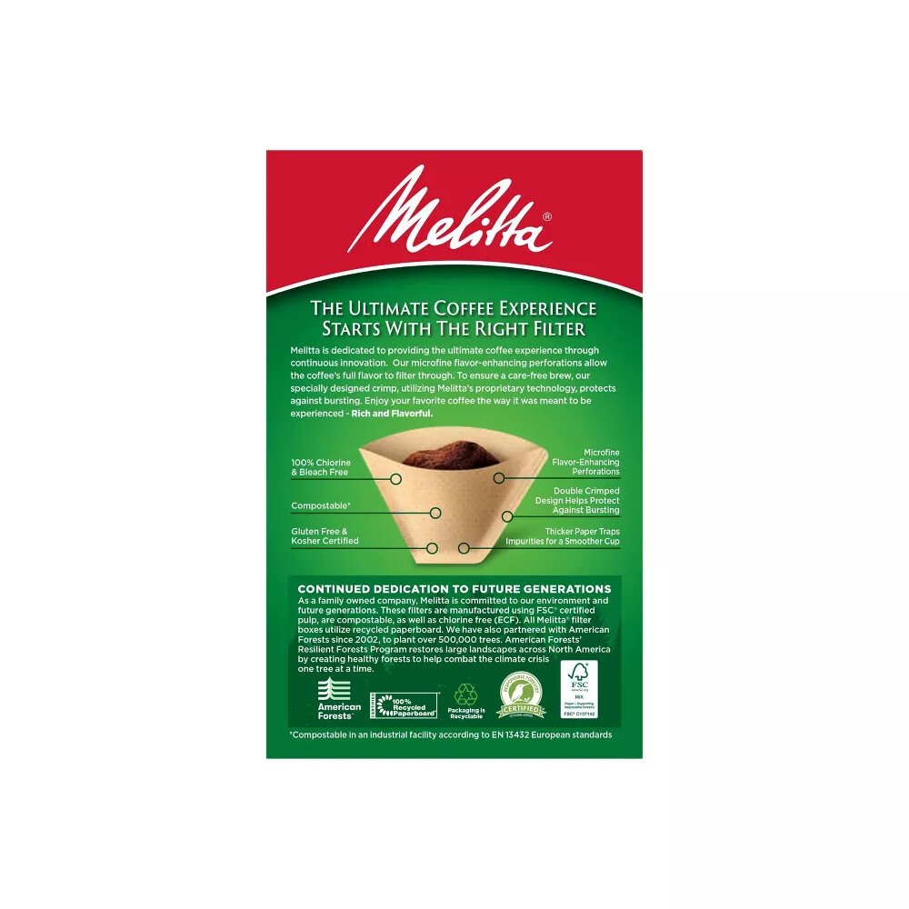 ☕ Melitta #2 Cone Coffee Filters – 100 Count | Rich Flavor, Eco-Friendly, Fits 2–6 Cup Brewers 🌱 Brew like a pro with Melitta #2 Cone Coffee Filters — the #1 cone coffee filter in the world , designed to deliver the smoothest, richest coffee experience, every time. ✨ Why Coffee Lovers Choose Melitta: ✔️ Microfine Flavor Enhancing® Perforations – let full flavor flow through ✔️ Double Crimped Design – for a strong seal & mess-free brewing ✔️ Thicker Paper – traps bitter oils & impurities for a clean, smooth cup ✔️ Fits All 2–6 Cup Cone Style Coffee Makers 🌍 Eco-Friendly & Certified: ✅ FSC® Certified – made from responsibly sourced paper ✅ BPI® Certified Compostable – commercial composting where available ✅ 100% Recycled Paperboard Packaging ✅ Chlorine-Free , Kosher , & Gluten-Free Crafted to honor the legacy of Melitta Bentz — the inventor of the coffee filter — these are the perfect filters for coffee connoisseurs who care about quality and sustainability. 📦 Stock up now for better mornings, one perfect cup at a time!