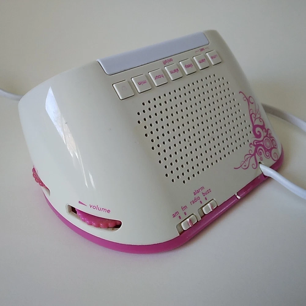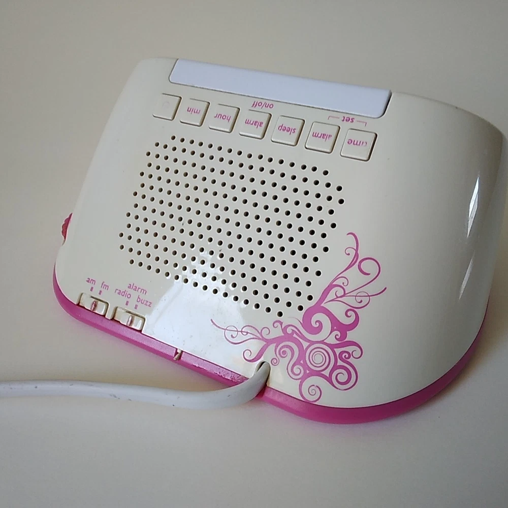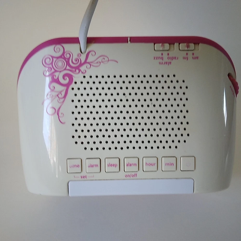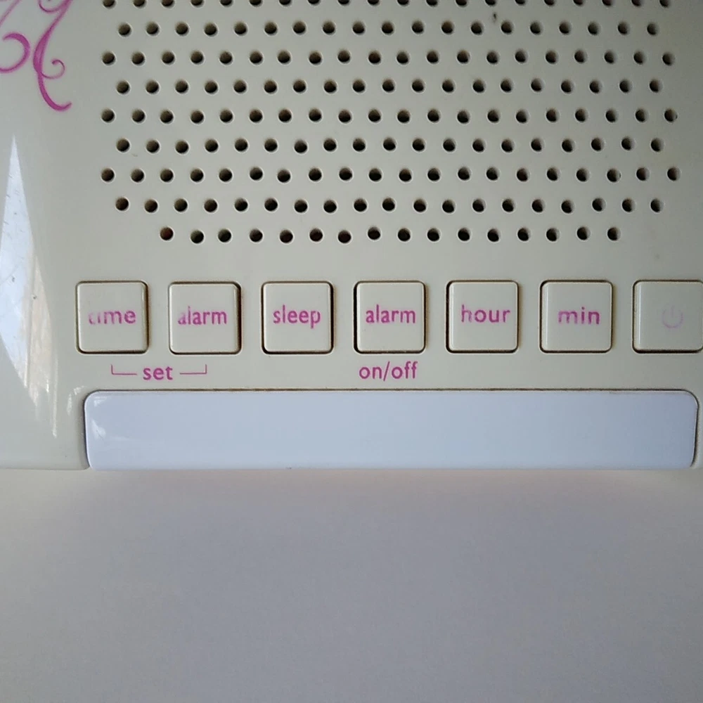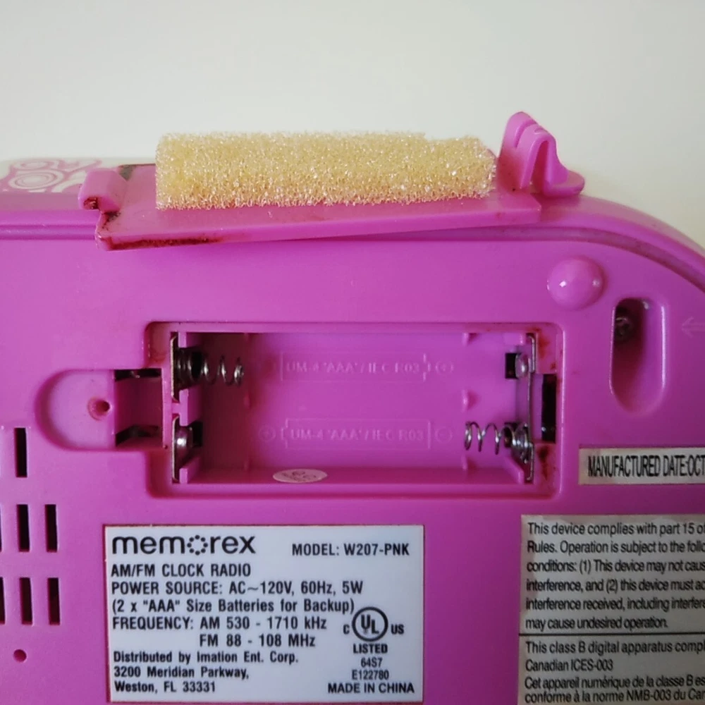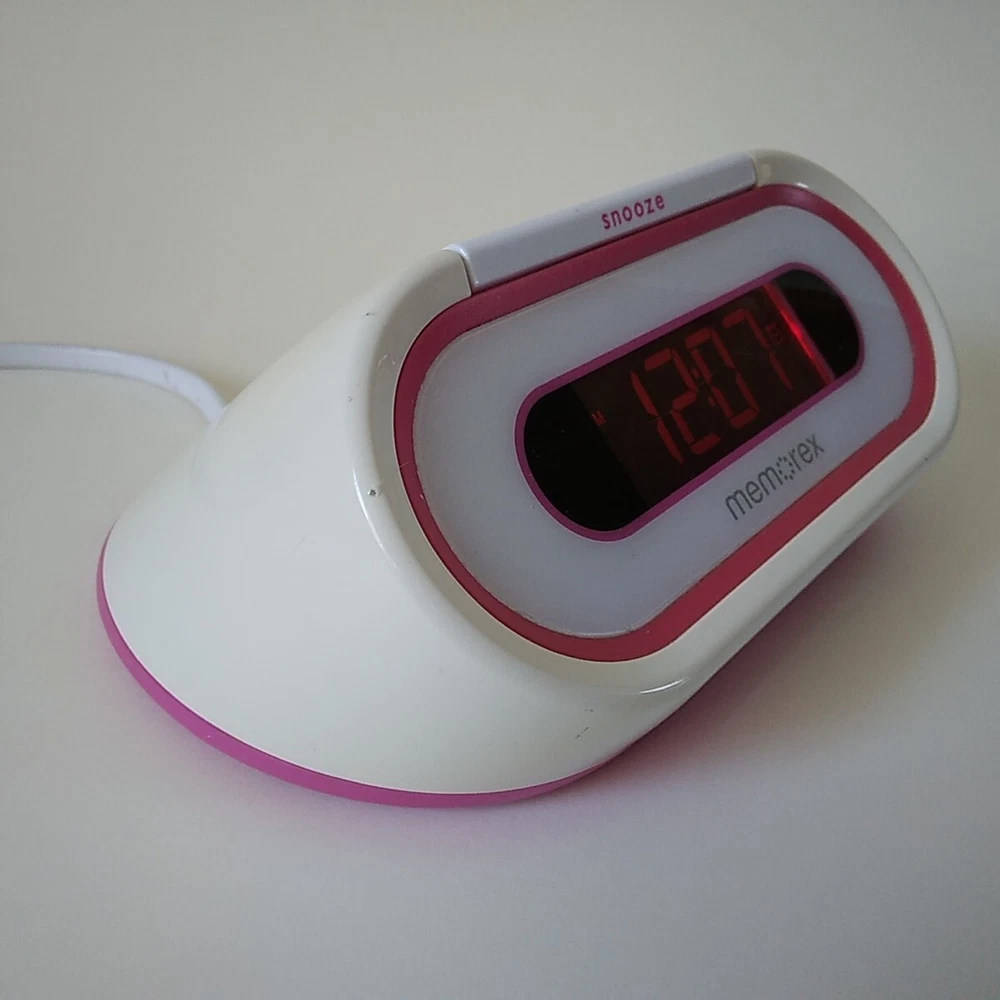 Memorex Model: W207-PINK Digital Radio Alarm Clock. This clock has been tested on all functions and works well. The alarm is a repeating beep. This clock is in good cosmetic condition. Minimal scratches. See pictures for a detailed look. Item will ship well protected. Thanks for the interest.