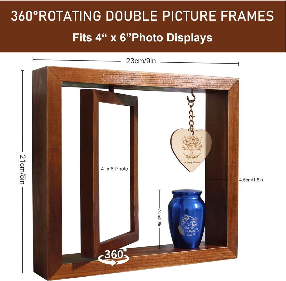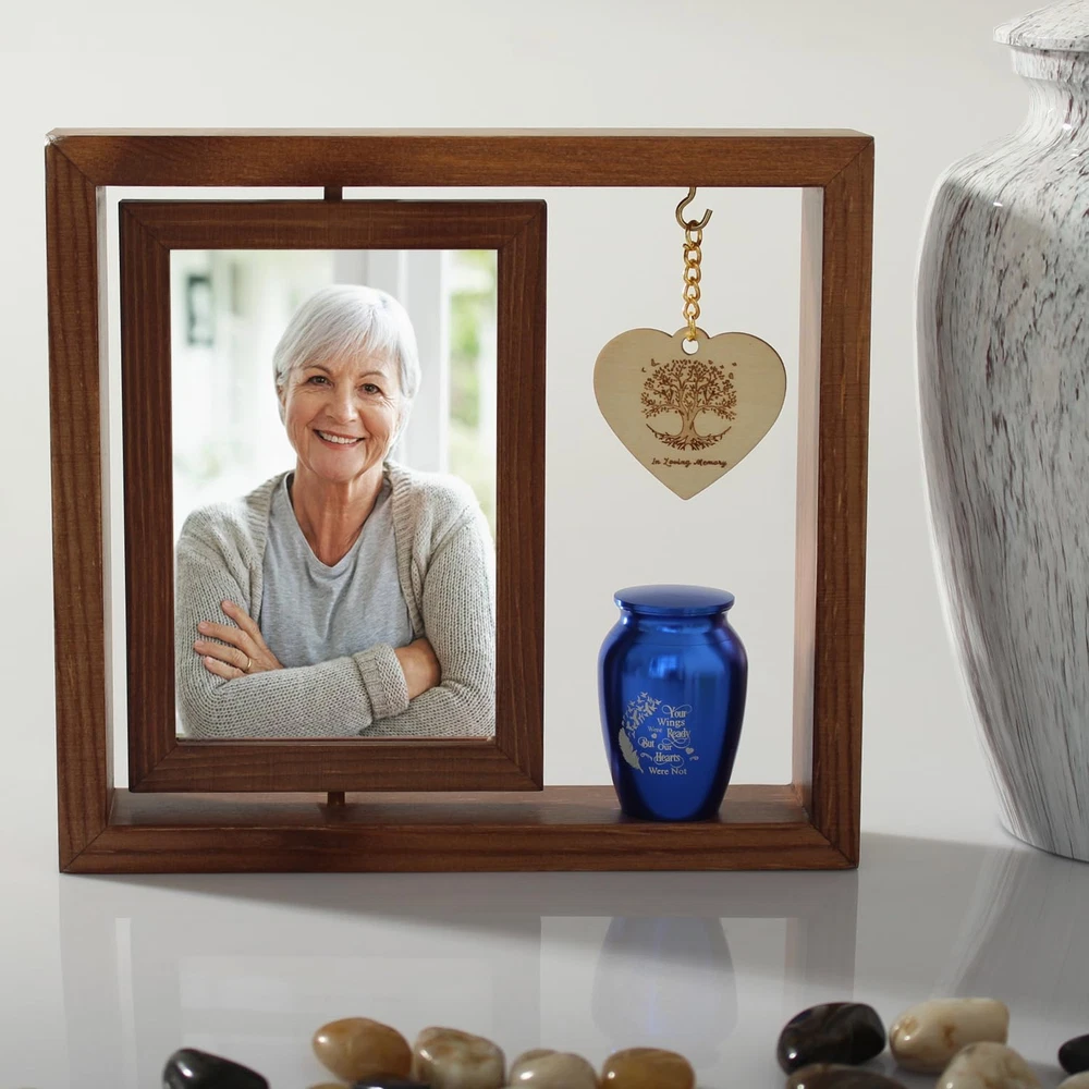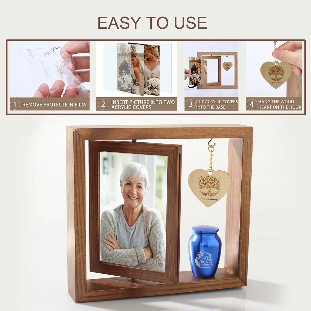 Store New Arrivals Add to Favorite View Feedback Contact Fast deliveries to the customer's home Quality customer service John Make the customers happy! Memorial Picture Frame and Small Urn Set Mini Cremation Urn Sympathy Gifts for Loss of Loved One Frame Hold a 4’’-6’’ Photo Mini Keepsake With, Medium Urn Brown Photo Frame Description 【Keepsake Photo Frame Urn Set 】This Keepsake Combination(Memorial Picture Frame and Blue Metal Urn ) is a Ideal Gift for Loss of a Father, Mother, Grandpa, Grandma, Brother, Sister, Friend, Pet, Etc 【Memorial Picture 】This rotatable keepsake frame is made wood. The overall frame size is 9"L x8"H x 1.8"W and can hold the photo of size 6"-7". The memorial photo frame will preserve the fond memories of your Gifts for Loss of Loved One. 【Keepsake Urn】High quality stainless steel has high resistance to rust, corrosion and tarnishing.engraved letters:Your Wings Were Ready But Our Hearts Were Not.Size:1.8" W x 2.8"H.The small urns for ashes keepsake with multiple thread ring are are completely sealed from water or leakage and design to provides a reliable .You can hold a small amount of ash, dried flowers, perfume, essential oils, special information, a strand of hair, clay or sand in the urn to remember you loved one 【Memorial Gifts 】Record your precious moments in this loved one memorial photo frame and keep your memories alive. It is an everlasting and enduring tribute to a beloved loved one. Although your loved one may be gone, their memory will live on forever. 【Quality Service】Our Memorial Picture Frame and Blue Metal Urn is Carefully Wrapped In and a Thick Box to Avoid Damage During Transportation. If You Encounter Any About Keepsake Photo Frame Urn Set Problems,Please Contact Us In Time and We Will Try Our Best to Help You Solve Them,and We Will Resend a New One for You. Product Description Item model number cd06272 Style Traditional Capacity 1.5 ounces Number of Items 1 Pattern Floral Country of Origin China Unit Count 1.0 Count Batteries required No Frame Material Metal, Stainless Steel, Wood Finish Type Polished Item Weight 1 pounds Occasion Mother's Day, Grandparents Day Target Audience Unisex Adult Orientation Horizontal Mounting Type Wall Mount Color Transparent Cover Material Metal Shape Rectangular Back Material Type Wood Finish types Polished Frame Type Single Picture Frame Product Dimensions 9"L x 2"W ABOUT US We offer the best prices around on high quality products. Our E-store includes media such as books, movies, music and games while offering electronics, toys, sporting apparel, clothing, tools, general home, garden items and more. SHIPPING We are always working hard to ensure your package arrives as soon as possible. Please understand that some factors like weather, high postal traffic, and the performance of shipping companies are outside of our control. We offer free shipping to the lower 48 states and ship within 2 business days of payment, usually sooner. We do not accept P.O. Boxes. Please provide a physical address. For shipping outside of the continental USA, we only use eBay's Global Shipping Program. The item is shipped to KY and then sent to the rest of the world. International customers are responsible for all duties and taxes. Continue to 'check out' to calculate costs for shipping the item to your country. Messages regarding eBay's Global Shipping Program MUST be directed at eBay EXCLUSIVELY. RETURNS We offer a 30-Day Return Policy on items in which you are not completely satisfied with. You have the option of a full-refund or an exchange of the item. No returns are available on items shipped outside of the USA PAYMENT We accept PayPal. CONTACT US This page content is yet to come Please ad us to your favorite seller and visit again later Thank You CUSTOMER SATISFACTION We try our very best to make sure every customer is completely satisfied. If there's a problem, message us! We're happy to help. WE ACCEPT