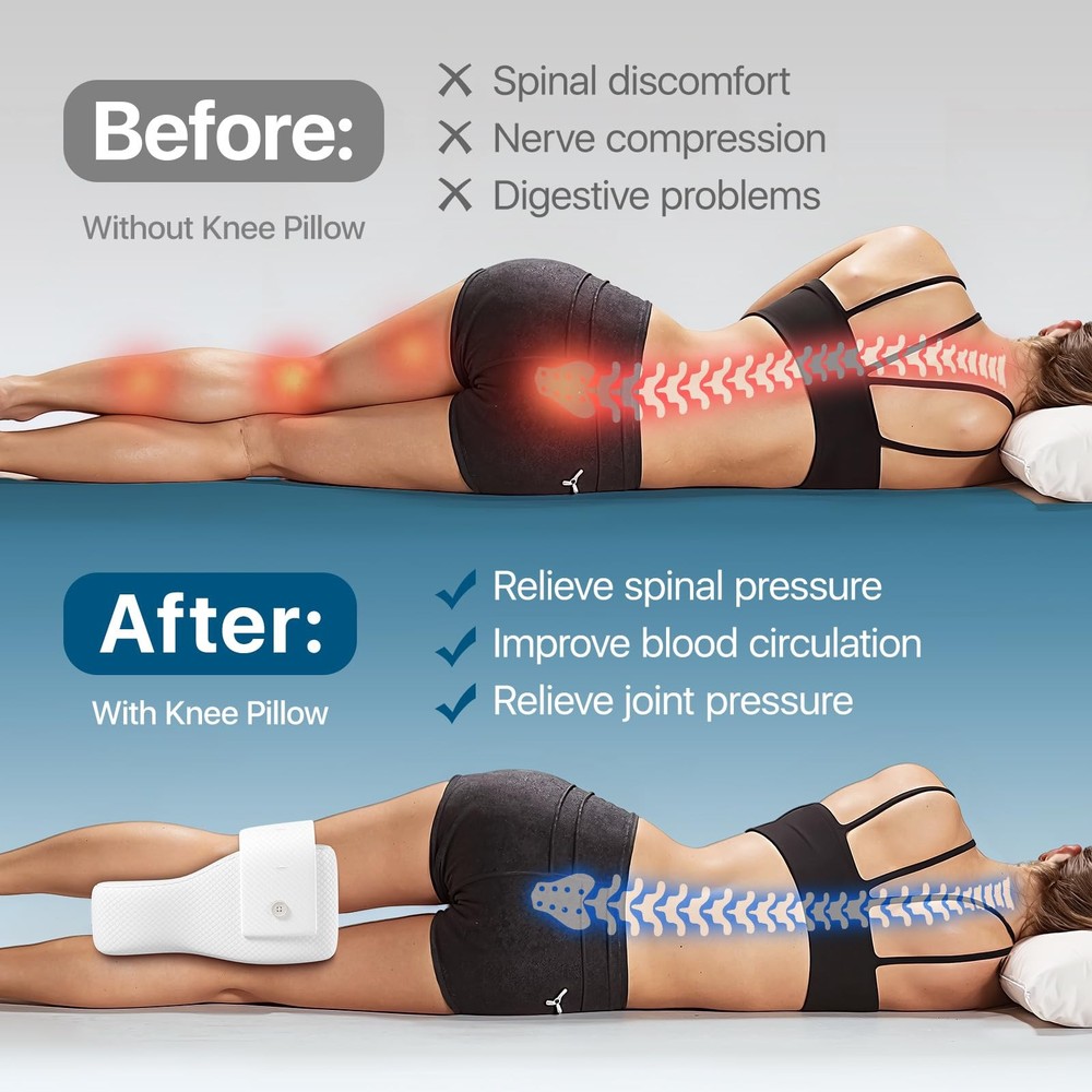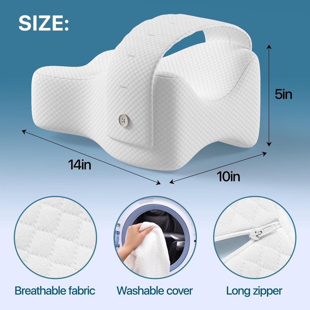 The knee pillow for side sleepers is designed for the knees and legs, keeping the spine aligned when sleeping on the side, reducing back pressure and relieving joint discomfort. It is suitable for people with long-term back pain, pregnant women or postoperative recovery, making sleeping easier. Optimal size and softness: The design team has conducted extensive research on the size, hardness, and material selection of the knee pillow. The size of the body pillow is 14"×10"×5", the slow rebound memory foam fits the knee and leg curves perfectly, and the 4-inch extra-wide elastic straps fix the legs and do not shift when turning over. Our knee pillow for side sleepers is more durable than ordinary fiber pillows and does not deform after long-term use. The pillowcase is breathable, soft and removable. Comfortable support: When sleeping on your back, placing leg pillow under your knees can help maintain the natural curve of the spine, reduce the waist hanging in the air, reduce the pressure on the lumbar spine, and relieve back pain. When sleeping on your side, leg pillow for side sleeping can keep the pelvis in a neutral position and reduce the burden on the spine and hip joints. Reduce joint pressure: For people with knee or hip discomfort (such as arthritis, postoperative recovery), a knee support pillow can disperse pressure and avoid excessive compression of the joints. Improve blood circulation: Raising the knees moderately can promote blood return to the lower limbs and reduce leg swelling. Our sciatica pain relief pillow is especially suitable for people who sit or stand for a long time or pregnant women. Practical and heartwarming gift: The multifunctionality of the side sleeper pillow make it a thoughtful gift for elderly, pregnant women or friends with lumbar discomfort. The product enjoys 3 years of after-sales service. If you have any questions, please feel free to contact us.