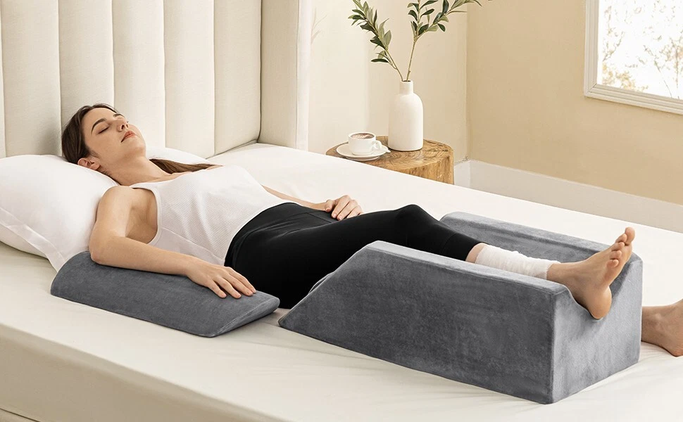 🌙 UBBCARE Premium Leg Elevation Pillow – Ultimate Support for Pain Relief, Surgery Recovery & Better Sleep 🛏️ Elevate your rest and recovery with the UBBCARE Premium Leg Pillow , designed to provide superior comfort and therapeutic support for your legs, knees, ankles, and back. Whether you're recovering from surgery, managing chronic pain, or simply seeking a better night’s sleep, this orthopedic leg wedge pillow is your perfect solution. ✅ Key Features & Benefits : 💠 Premium Memory Foam Comfort Crafted from CertiPUR-US certified high-density memory foam, this leg pillow is non-toxic , phthalate-free , and BPA-free , offering safe and lasting support without collapsing or losing shape. Ideal for daily use. 💠 Ergonomic 40° Leg Elevation Design Specifically engineered with a therapeutic 40° incline and central notch to cradle your legs in place—enhancing circulation, relieving pressure, and reducing swelling. Perfect for leg, knee, and ankle pain relief , as well as post-operative recovery. 💠 Adjustable Bolster Pillow for Custom Support Includes a detachable bolster pillow to fine-tune elevation and positioning. Use it as a: Leg and foot rest Under-knee wedge Neck support pillow Lower back cushion 💠 Supports Recovery & Pain Management Ideal for individuals recovering from: Knee or ankle surgery Foot injuries Varicose veins Edema or swelling Sciatica and chronic leg pain 🌟 Soft, Washable, and Skin-Friendly Velvet Cover The breathable gray velvet cover is ultra-soft to the touch, gentle on sensitive skin, and machine-washable —making it perfect for long-term use, especially for bedridden patients. 📏 Product Dimensions Size: 25.5" x 9.4" x 7.5" (L x W x H) Material: CertiPUR-US Certified Memory Foam + Velvet Cover Note: The pillow is vacuum-packed for shipping. Please allow 24–48 hours for it to fully expand to its original shape. 👥 Who Is It For? ✔️ Patients recovering from surgery ✔️ Individuals with knee, ankle, or leg injuries ✔️ Those dealing with swelling, foot pain, or poor circulation ✔️ Anyone seeking enhanced comfort and restful sleep 🌙 Experience Restorative Sleep & Healing Support – Only with UBBCARE Invest in your recovery and sleep quality with the UBBCARE Leg Elevation Pillow – your reliable solution for comfort, support, and wellness. Whether you're recovering from an injury or simply want to improve your sleep posture, this pillow delivers exceptional support with long-lasting results . 🛒 Order now and enjoy better sleep, faster recovery, and unmatched comfort—starting tonight! 💫