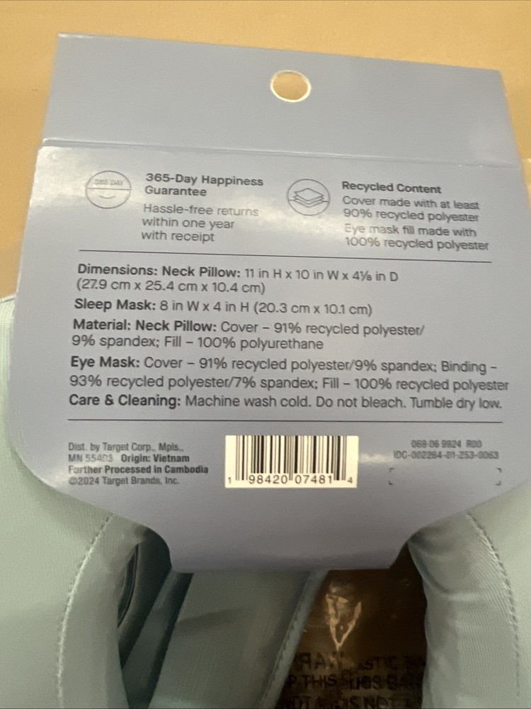 Memory Foam Travel Neck Pillow & Eye Mask Muddy Aqua - Open Story™. Condition is New with tags. Shipped with USPS Ground Advantage.
