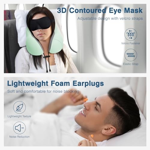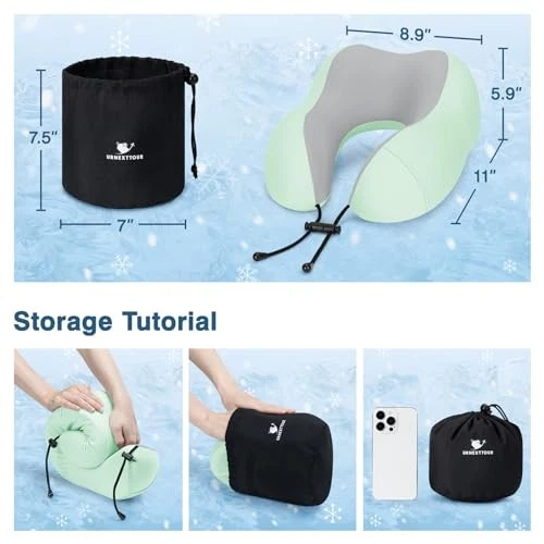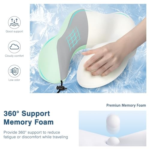 This travel pillow is a game-changer for long trips! The memory foam provides amazing support, and the cooling fabric keeps me comfortable the whole journey. I love that it comes with an eye mask, earplugs, and a handy storage bag—perfect for flights, car rides, or even napping at home. Super soft, breathable, and worth every penny! Fast shipping too!