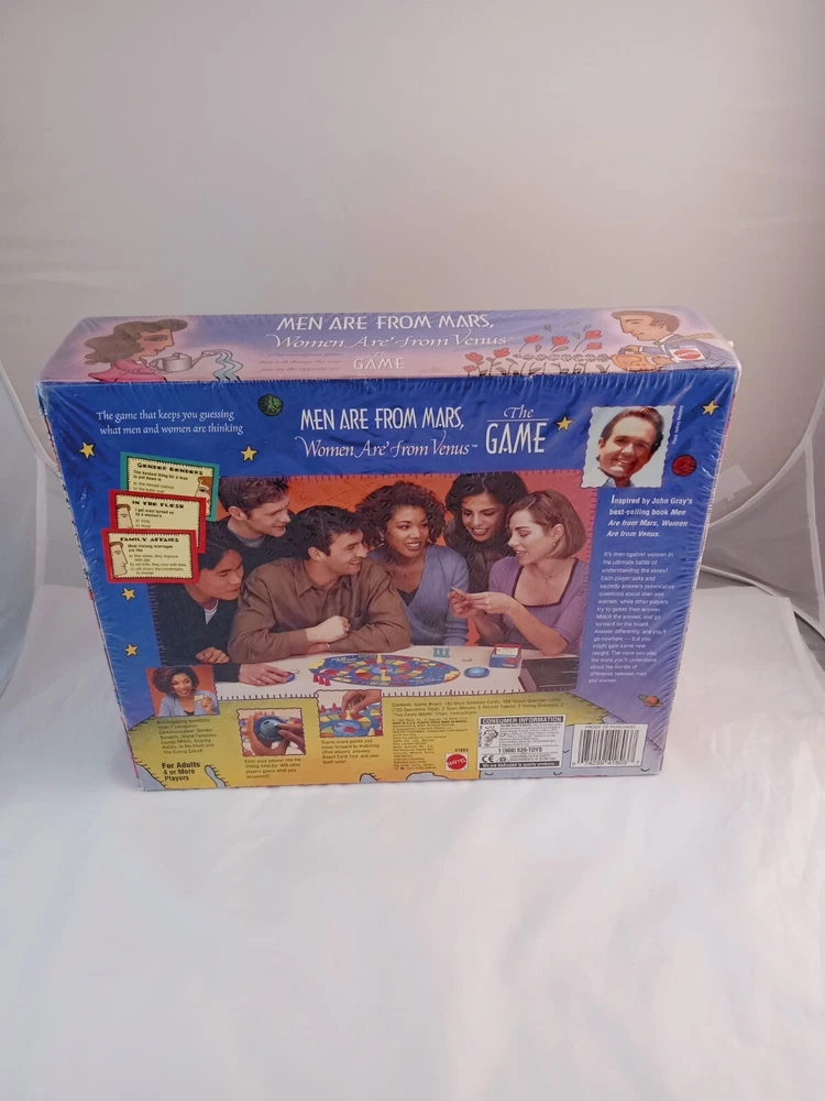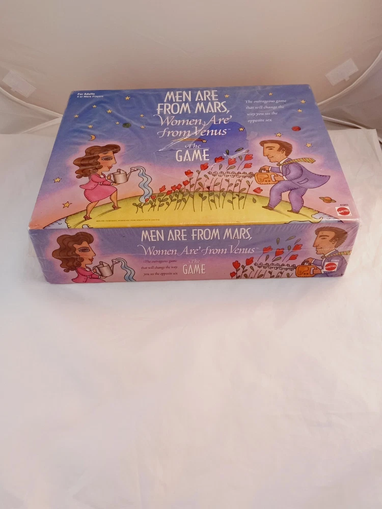 Explore the world of relationships with the Men Are From Mars, Women Are From Venus board game by Mattel. This game is perfect for adults, with a recommended age range of 17 years and up. The game is designed for four or more players, and includes aspects such as gender, with characters from both Mars and Venus. The game board is an exciting addition to the game, with a fun theme of relationships. It was manufactured in China in 1998 and is still factory sealed. This board game is a great addition to any game collection and is perfect for game nights with friends and family.