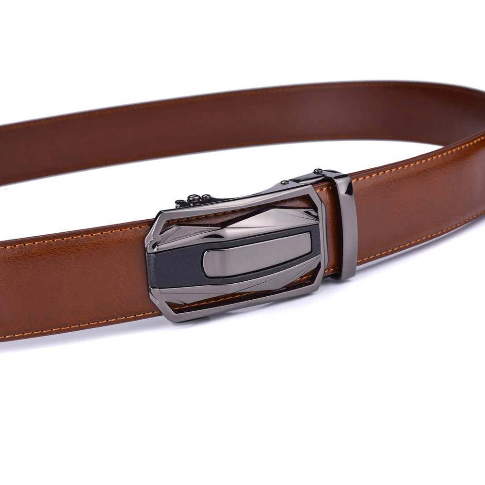 Description Size reference: 28-38 inch waist adjustable 40-44 inch waist adjustable 46-56 inch waist adjustable Just cut the belt to fit if it is too large. The belt and buckle is sent loose so you can easy to cut the belt to fit and then insert the belt to the buckle and press down to make it firm. The belt is piece leather so it is smooth and qualified. Moderate hand feeling. Buckle is alloy metal. It will hold up pants well. Genuine leather belt: black, coffee, brown, navy blue, cognac colors available,35MM wide, good stitching edges. Adjustable Size: cutting size for 28 30 32 34 36 38 40 42 44 46 48 50 52 54 56 waist, 38 micro ratchets to give you perfect fitting and small adjusts before and after meals. S, M, L, XL, XXL, XXXL and XXXXL belts for men Alloy Buckle: Removable buckle, and they are interchangeable so you can switch the buckle as you like. Classic vintage fashion buckle styles are all available like car style and others. Suitable occasions like work, dress, pants, jeans, casual, wedding, bridegroom,church, and everyday wear belt for men, boys and young. 365 days free buy return or . Just seller to get best service if you have any problems.