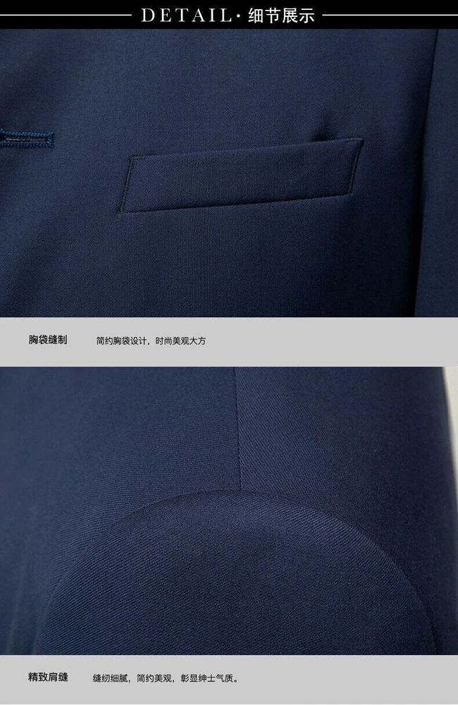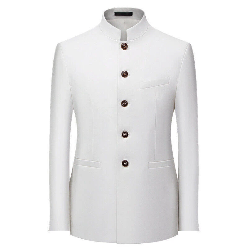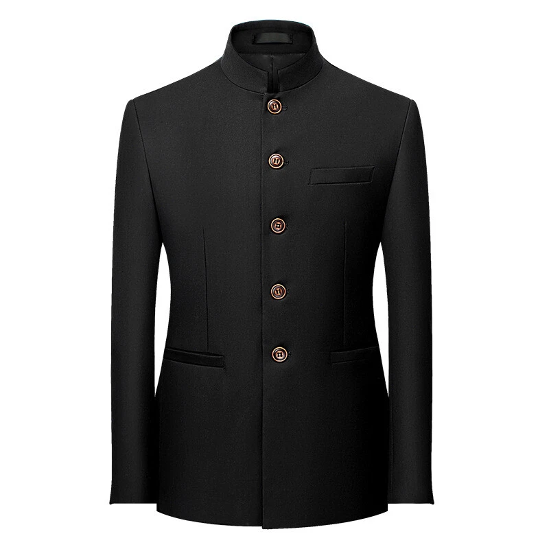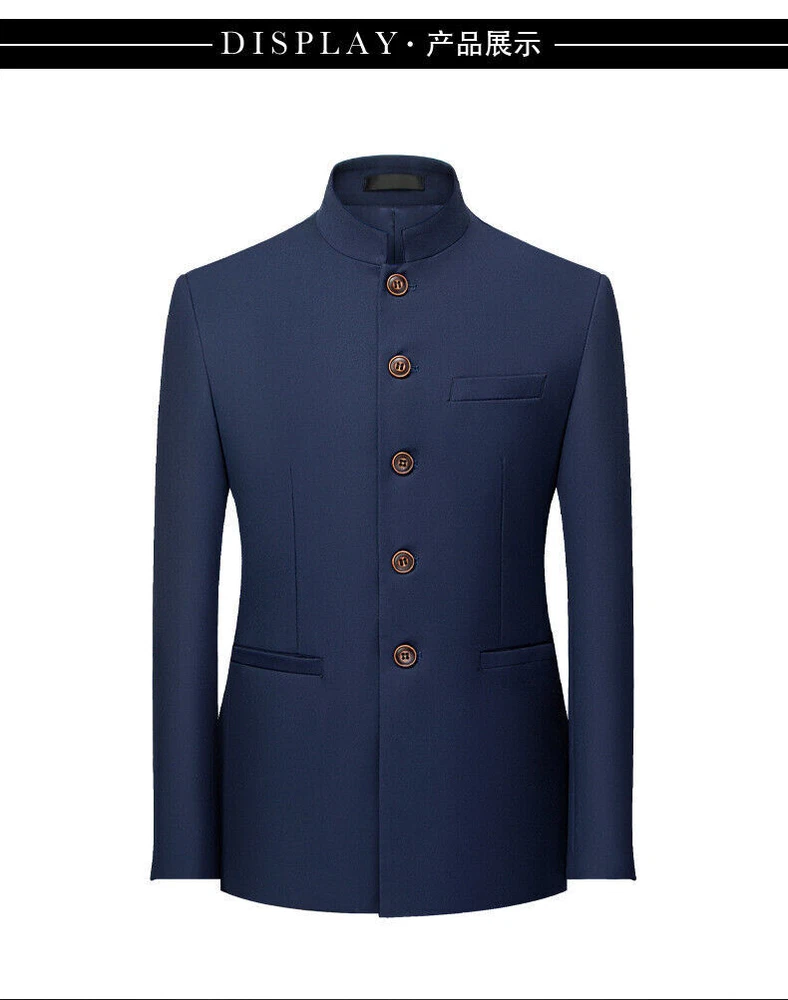 Men Business Stand Collar Suit Slim Fit Blazer Retro Jacket Chinese Tunic Suit