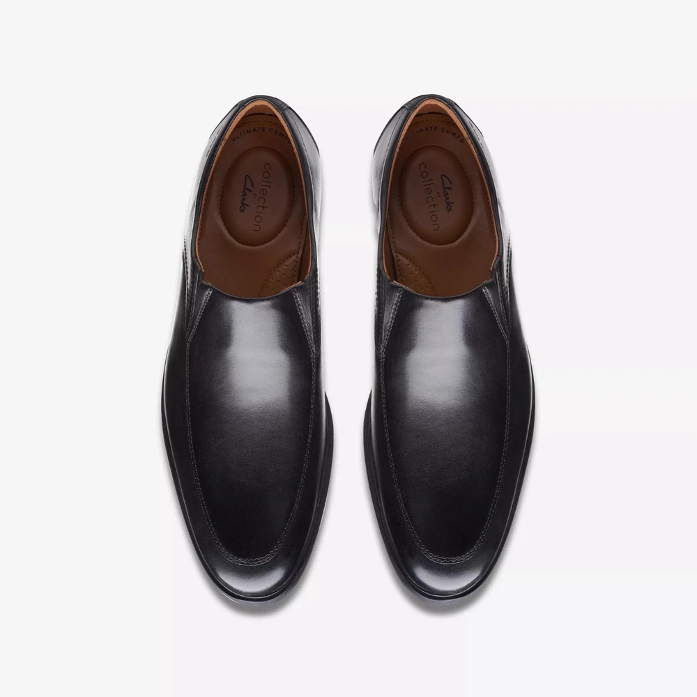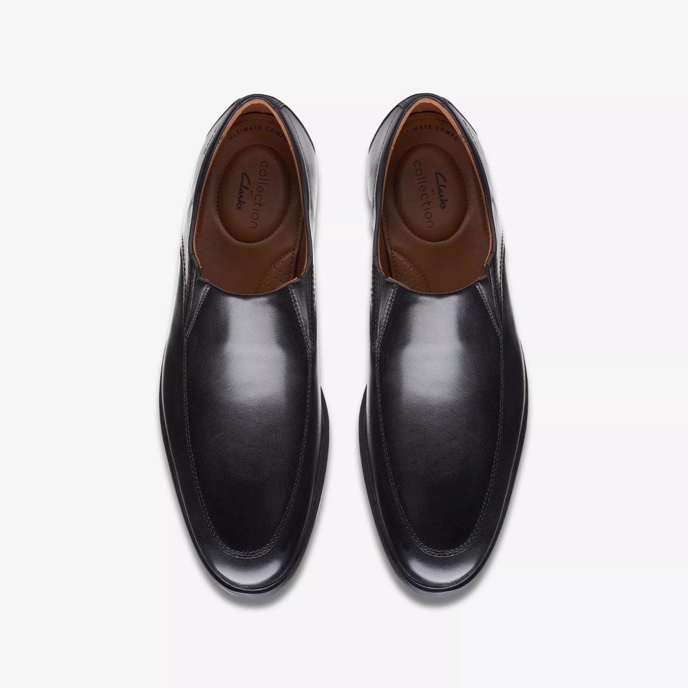 Men's Clarks Whiddon Black Leather Dress Loafers Size 11.5 M