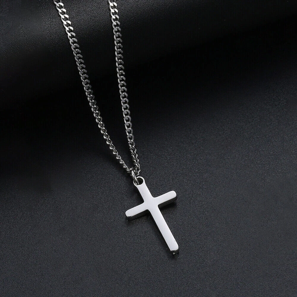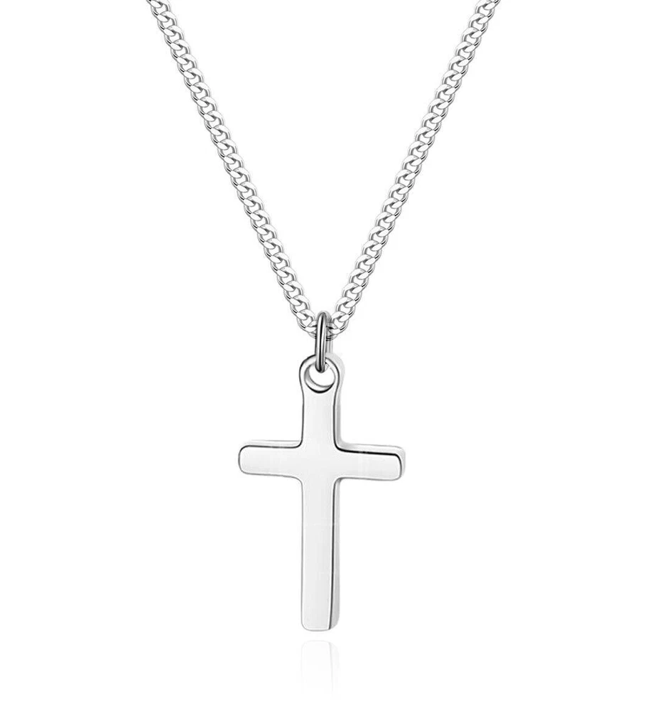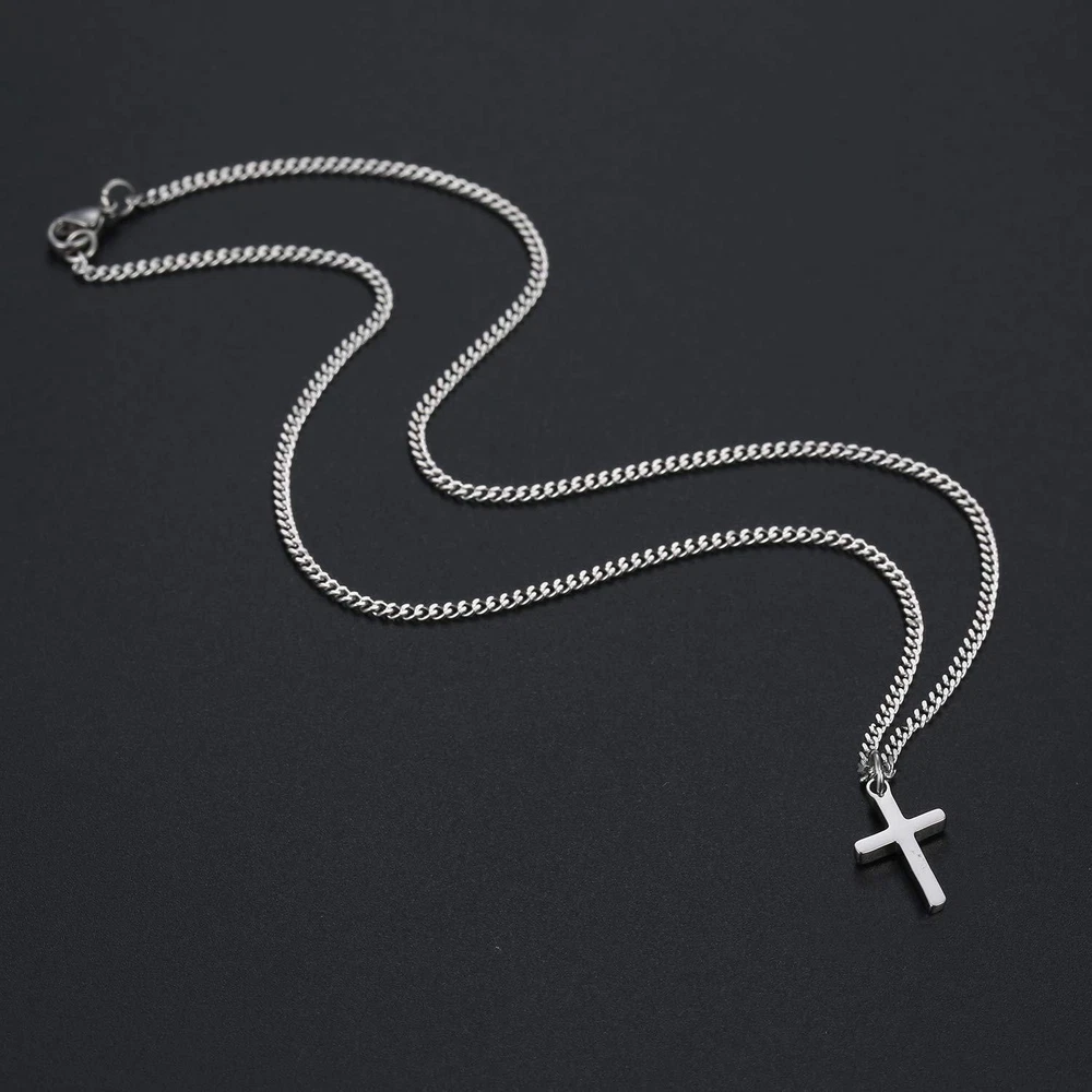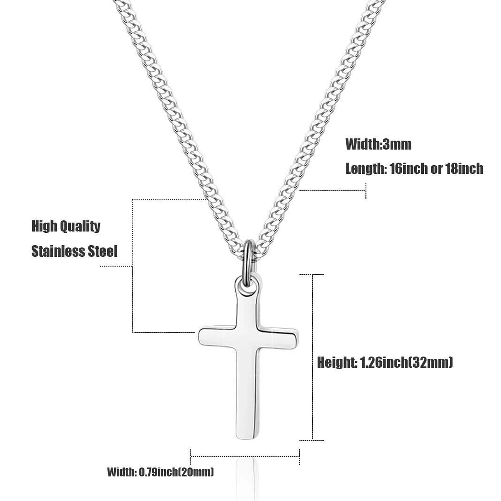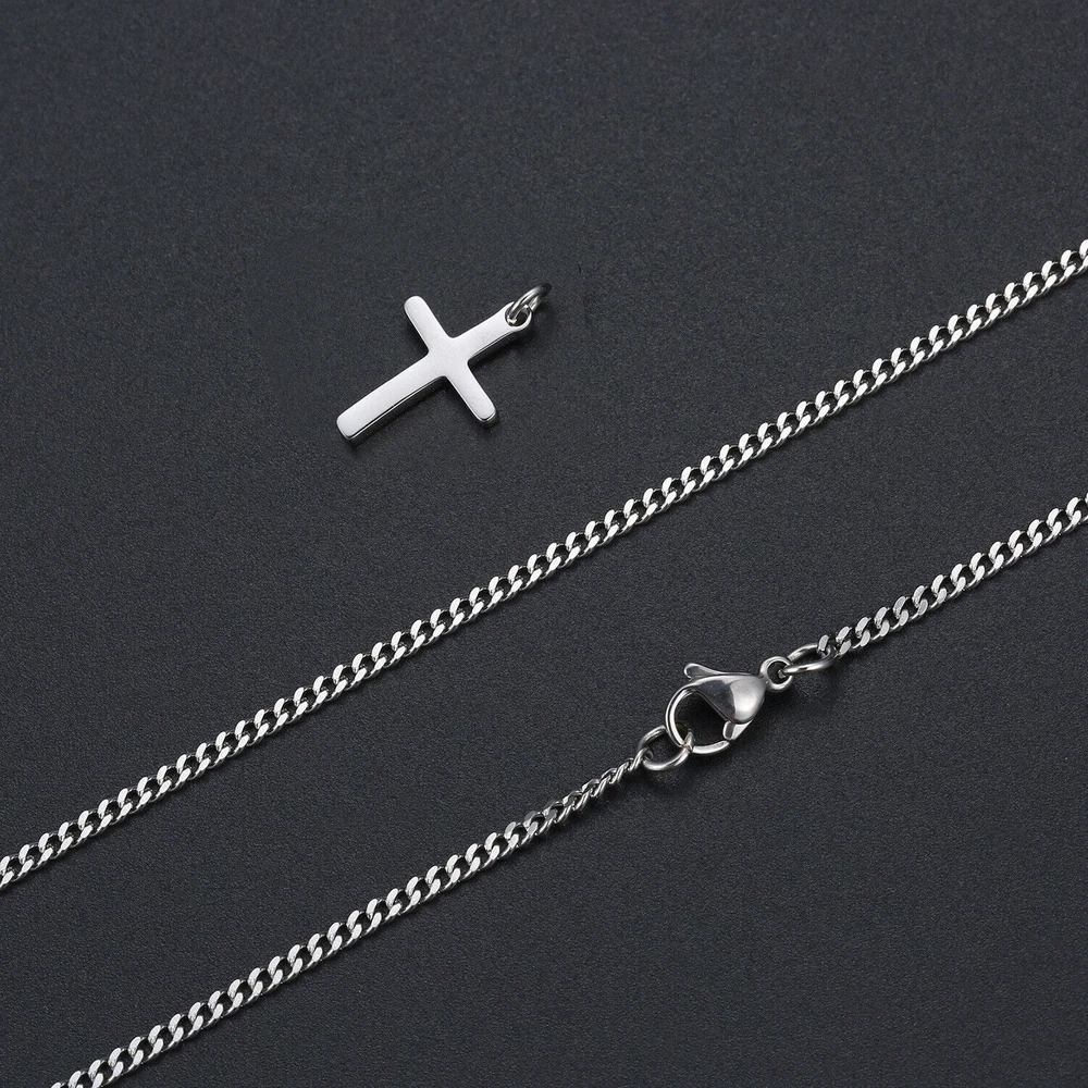 Men Women Cross Necklace for Boy Girl Stainless Steel Small Pendant Cuban Chain