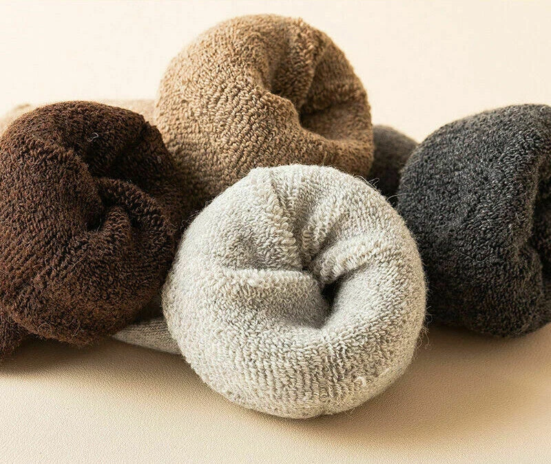 REMIUM MATERIALS - Our wool socks are made of high quality wool blended fabric, which is very soft, durable and doesn't deform easily. Our socks will provide you with a good wearing experience. COMFY & BREATHABLE KNIT WOOL SOCKS - The soft fabric blend is skin-friendly, itch free, breathable, durable, moisture wicking and odor-fighting, keep your feet warm, dry and comfy all day both indoor and outdoor. FULL CUSHION - The full cushion socks are more warm and thick. which can help you better resist the cold in the cold winter. It can absorb shock effectively and protect your feet. Whether in daily wear or outdoor sports, It can make you feel warm all day in cold winter. WARM & MULTI-FUNCTION - Fluffy wool lined inside makes it super soft and comfortable, keep your feet and toes warm all day. Fashion color can be easily matched with your outfits. Our high quality wool men's socks are suitable for different situations. EXCELLENT GIFT CHOICE - The wool socks are warm and decent. It is perfect for Christmas or daily wear, so this is a perfect present for guys or men, you could choose it for your friend or your family as Christmas gift. General Specs Gender Men Color 5 Colors Season Spring, Summer, Fall,Winter Length 26-28cm/10-11inch Size US Size 7-11, EUR Size 38-43 Net Weight (g) 50g Quantity 5-Pack random colors