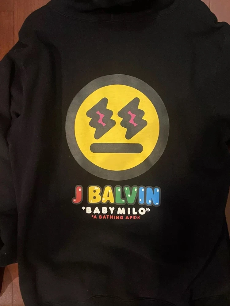 Introducing the limited edition J Balvin X Bape Baby Milo Collab in size 3XL. This rare item features the iconic A Bathing Ape design and is perfect for any fan of the brand. This piece is super rare and was sold out upon release. Can send additional photos or videos upon request. 100% Authentic