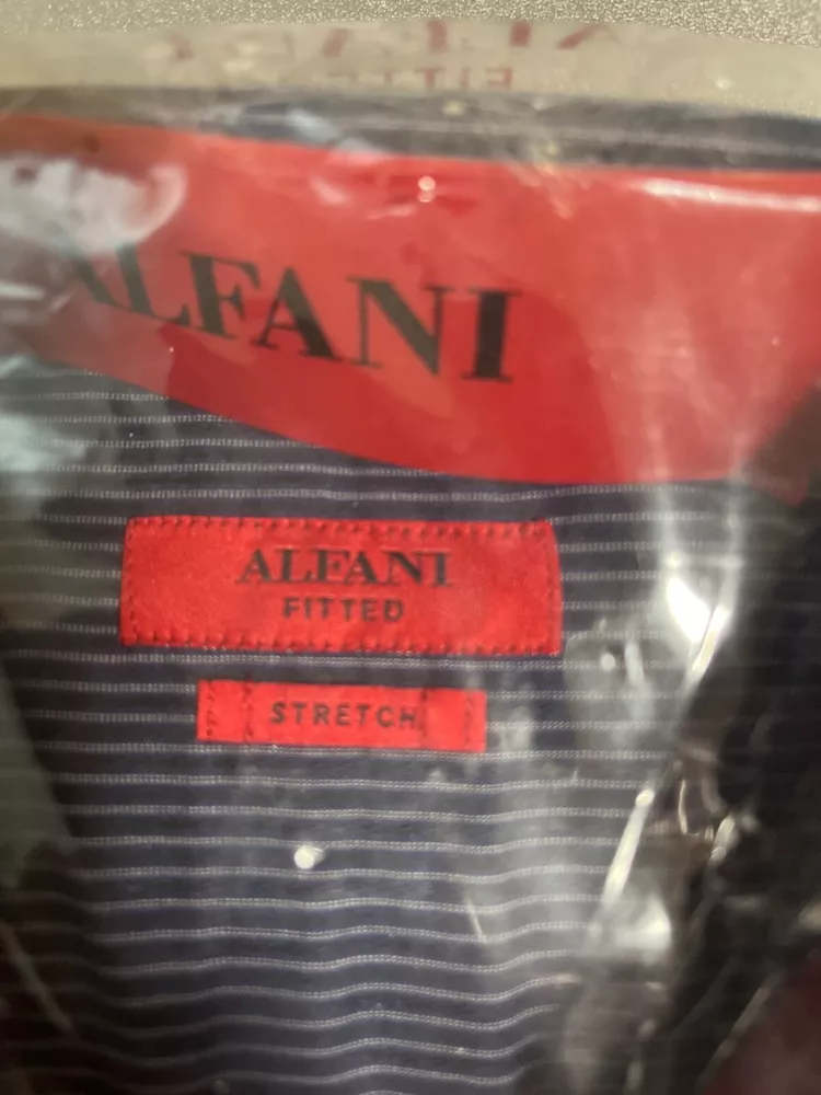 The product is a men's Alfani dress shirt in size 17.5, with a 32/33 sleeve length. It is a regular fit shirt designed for formal or business attire. The Alfani brand is known for producing high-quality clothing items, making this dress shirt a stylish and professional option for men looking to enhance their wardrobe.