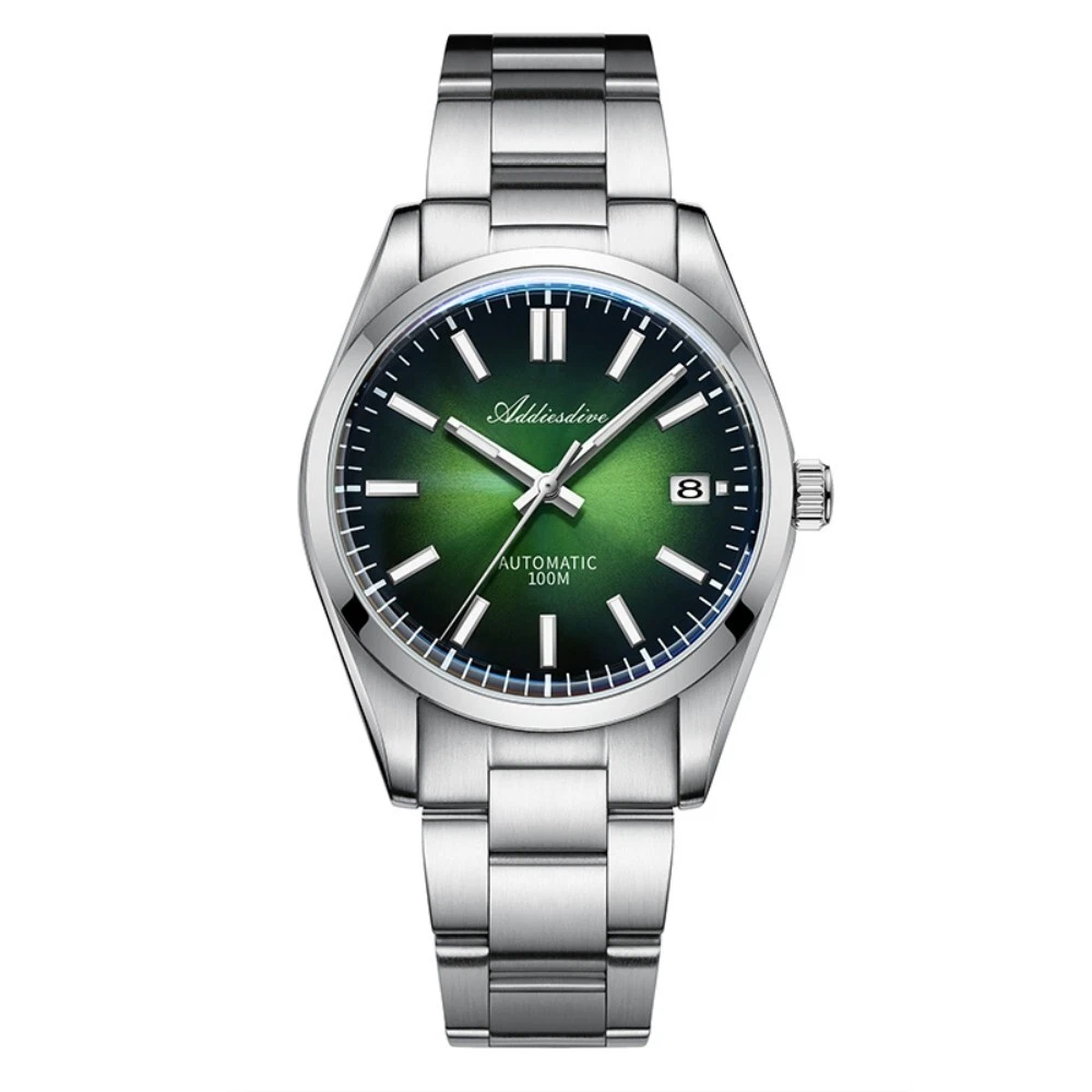 ADDIESDIV Men's Luxury Automatic Watch Sapphire Crystal Japan NH35A Mechanical Movement 100M Waterproof Luminous Sport Analog Watch ⌚Premium Build: Crafted from high-quality 316L stainless steel, the AD2071 features a robust case and strap that ensure durability and comfort for everyday wear ⌚Exceptional Water Resistance: Rated for 100 meters, it is suitable for swimming, washing hands, and everyday use, making it a versatile choice for any occasion ⌚Sapphire Crystal Glass: Bubble mirror synthetic sapphire crystal,scratch-resistant and wear resistant. Coated with Swiss shadowless anti-glare blue film,clear and easy read ⌚Brilliant Visibility: Features super luminous markers and hands for clear readability in low-light conditions and underwater ⌚Great Ideal Present: It is a great ideal present for both men and women.This striking men's formal watch is suitable for graduations, birthdays, weddings, and a worthy present for yourself, a friend, father, lover, or husband on special occasions