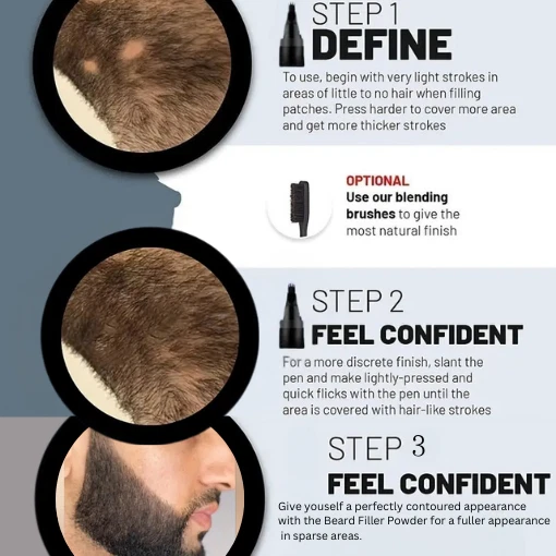 Achieve a Perfectly Defined Beard Effortlessly! Our Men's Beard Filler Pen Kit - Waterproof Beard Pencil, Brush & Powder is designed to help you fill in gaps, define edges, and create the appearance of a thicker, fuller beard. Transform your beard game with our premium Beard Filler Pen Kit! Designed for men who take pride in a polished, full, and natural look, this kit has everything you need to fill in sparse areas and define your style. Features: Waterproof & Long-Lasting: Stay confident all day with smudge-proof, sweat-resistant formula. Complete Grooming Kit: Includes a precision beard pencil, soft hairbrush, and bun powder for effortless application. Natural Look & Finish: Achieve a fuller, well-defined beard with a seamless, natural appearance. Easy to Use: Quick and simple application makes it perfect for beginners and professionals alike. Portable & Travel-Friendly: Compact size fits easily in your grooming bag for on-the-go touch-ups. Why Choose Us? Crafted for durability and comfort. Suitable for all skin tones and beard styles. Perfect for daily use or special occasions. Take your grooming routine to the next level with our Men's Beard Filler Pen Kit. Your beard deserves the best!