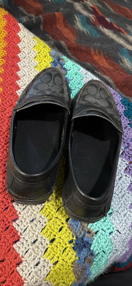 These black leather Coach loafers are perfect for any occasion. They are made for men and are size 10D. The shoes have a dress style and are great for spring. They are not customized and are not vintage. The upper material is leather.