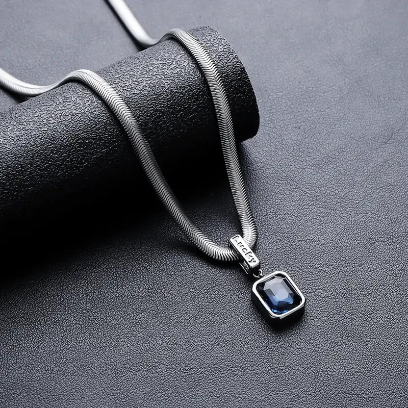 This Men's Blue Crystal Stone Pendant Necklace is a stylish and meaningful gift for any occasion. The square-shaped blue crystal stone set in titanium metal exudes a modern and sleek look, perfect for a polished and sophisticated style. The pendant necklace is designed with a 50 cm chain, making it a versatile piece that can be worn with various outfits for a touch of elegance.