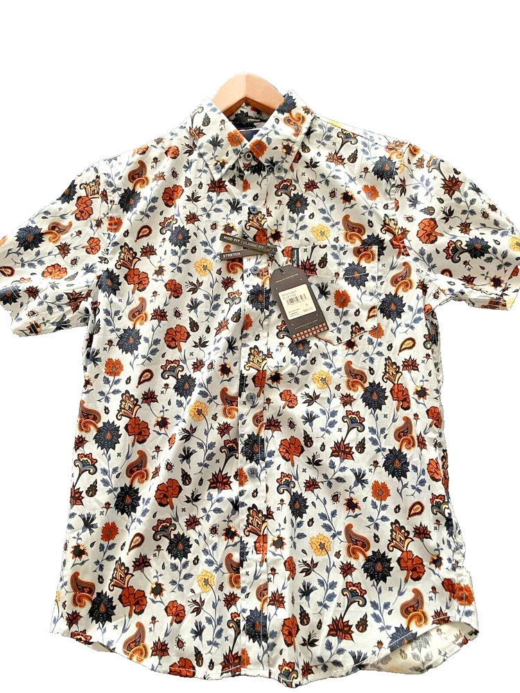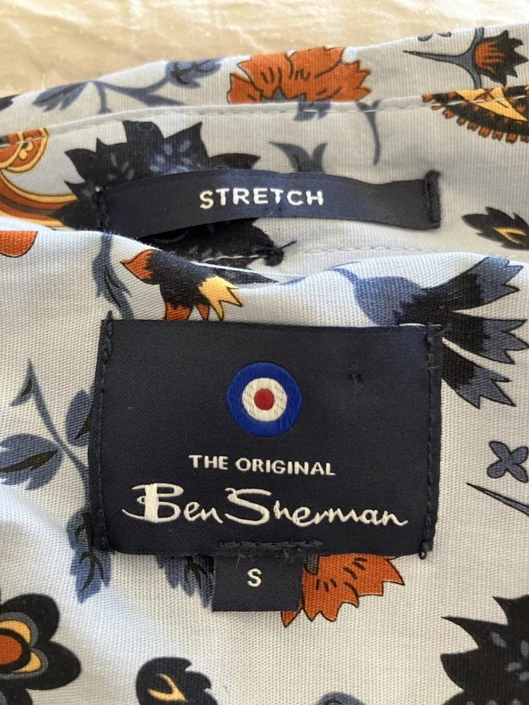 Crafted for the modern gentleman, this Ben Sherman men's dress shirt features a vibrant blue floral pattern that infuses a touch of elegance into any wardrobe. The short sleeve design and regular fit cater to a look that's both sharp and comfortable, making it an ideal choice for various occasions, from office wear to social gatherings.The shirt boasts a classic button-up closure, ensuring both style and durability. Its versatile themes, ranging from flowers to the 90s, allow for effortless pairing with a range of accessories and attire, making it a valuable addition to any fashion-conscious man's collection. Size: small Still with tag