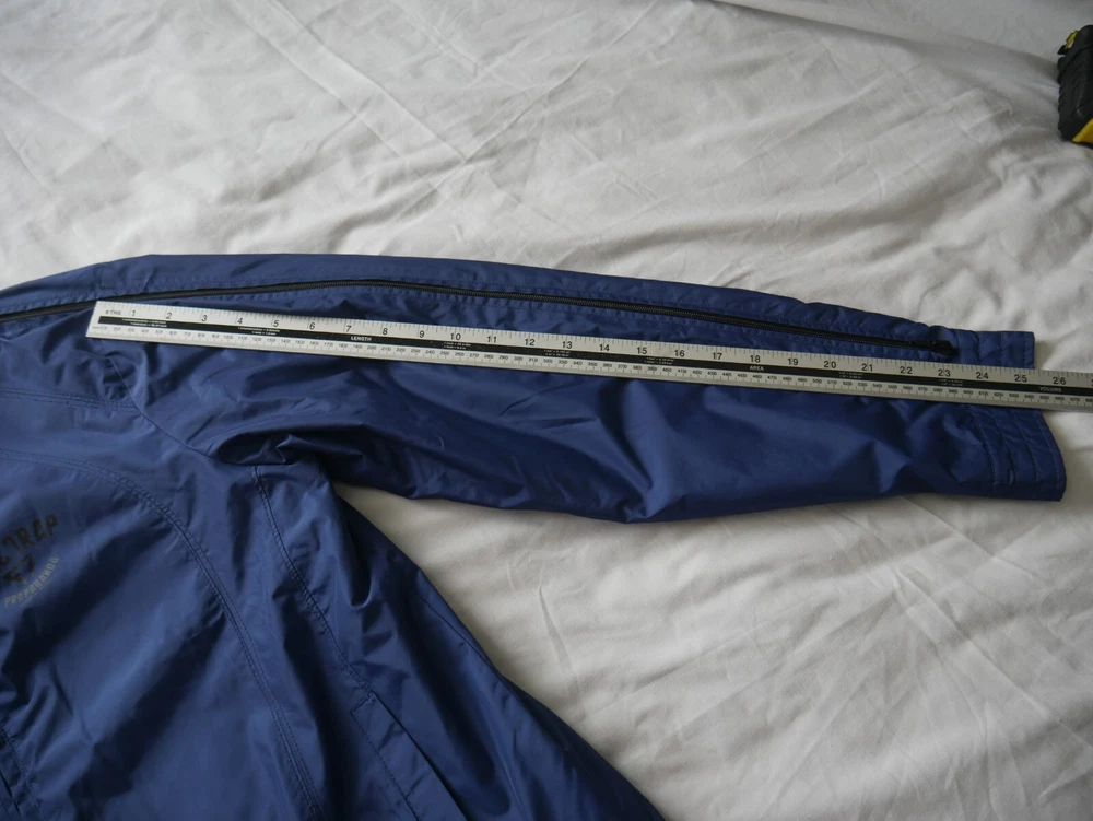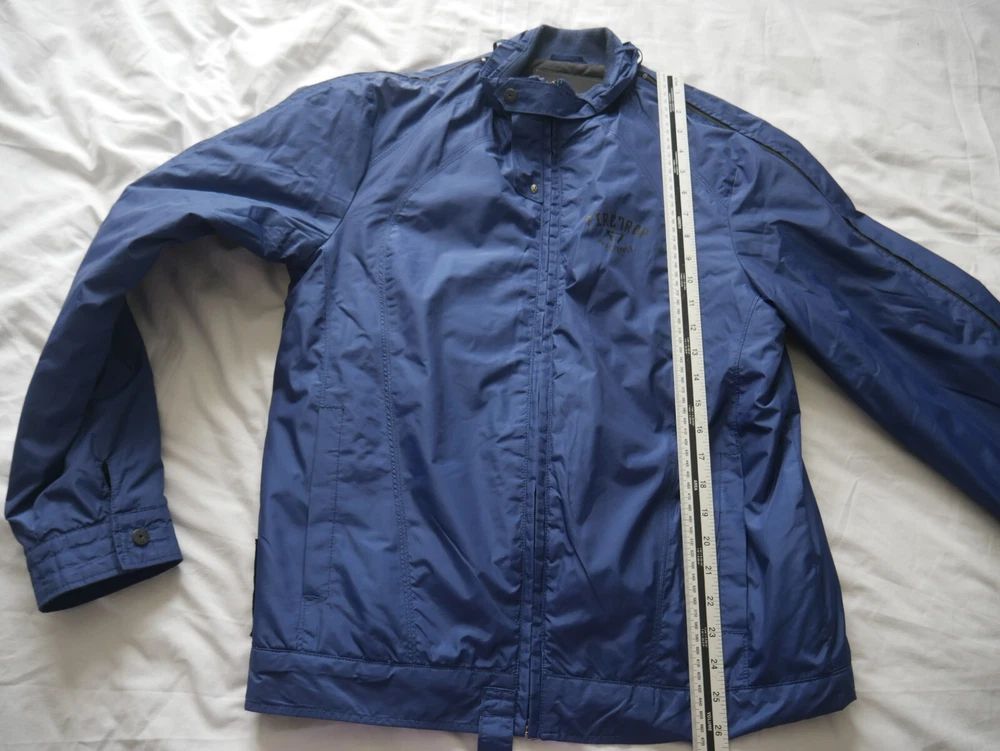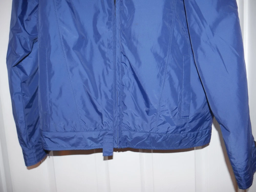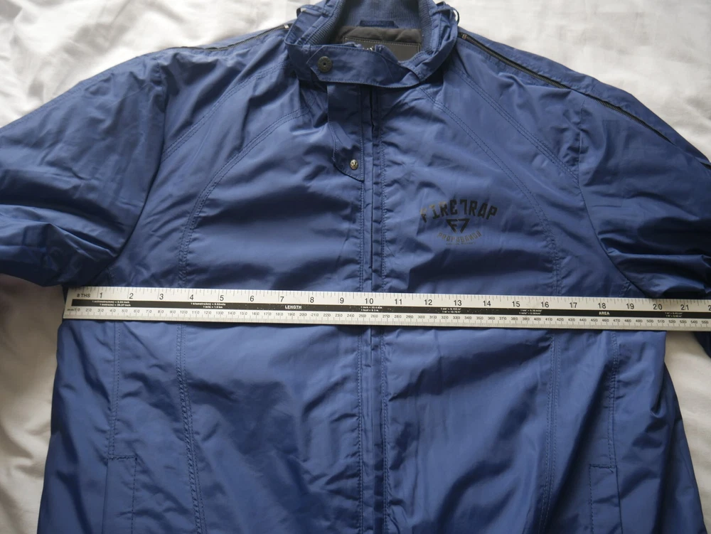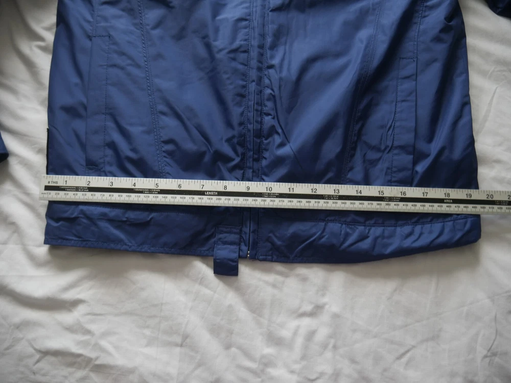 This coat is in excellent condition. It is a lovely quality. It is lined. It has an unusual zip detail down the sleeves. I think it will be shower proof if not water proof. It is 26" long. Armpit to armpit measures 22" The photos don't do it justice!