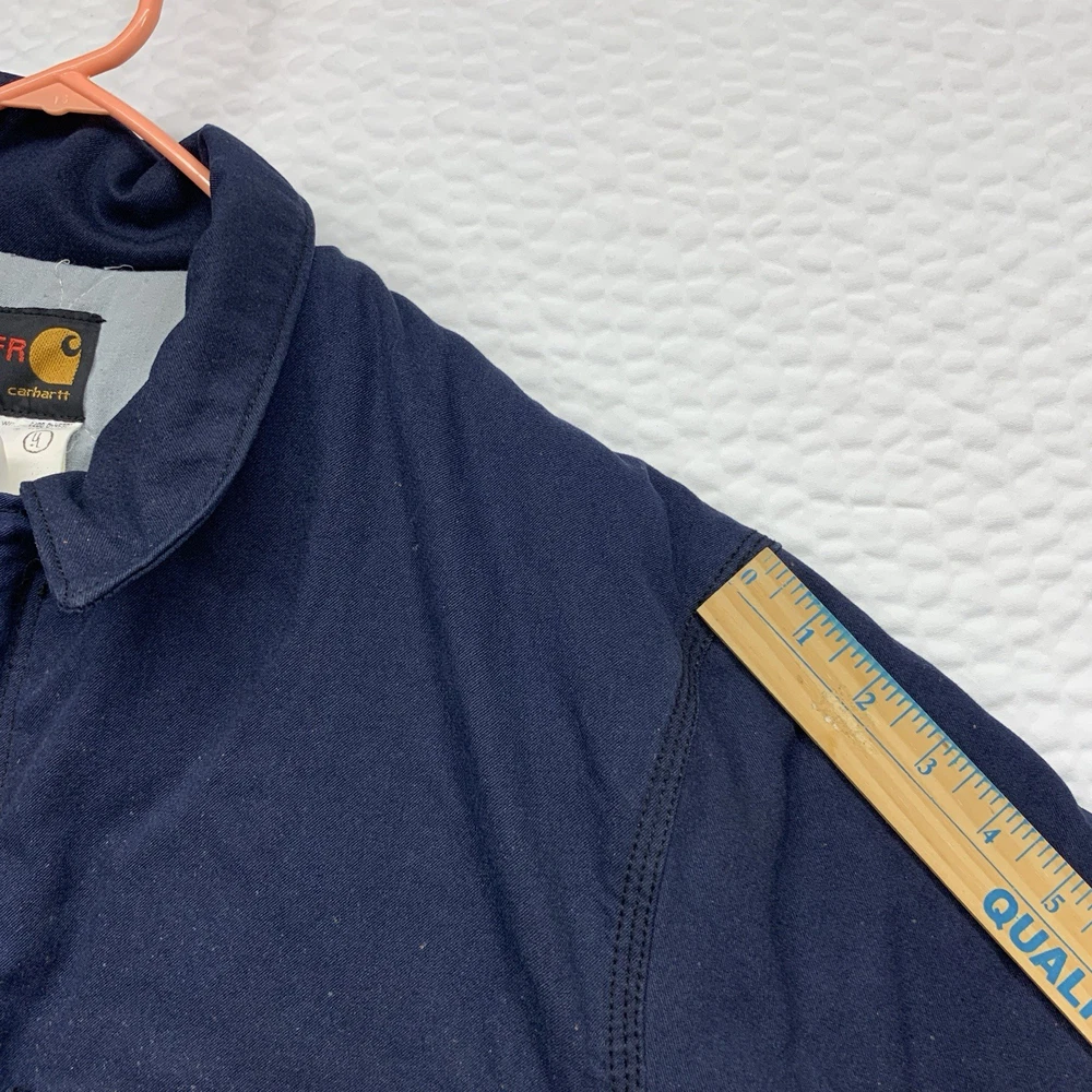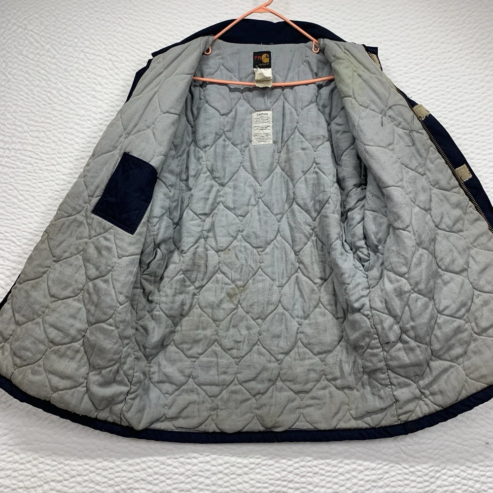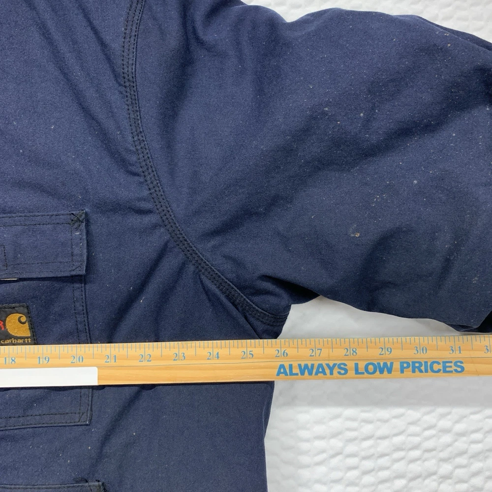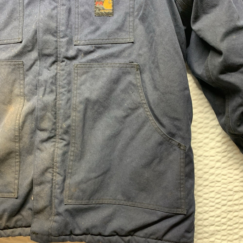 Men's Carhartt FR Size XL Flame Resistant Barn Chore Coat Quilt Lined Jacket It has stains everywhere. Hook and loop are well used. Overall, the coat is sound, just very stained up. It has been cleaned. Tags are faded but I believe it is an XL. Measure your favorite coat to be sure. All measurements are in the photos. We are passing our shipping discount on to you. All Clothing Items are cleaned before listing. Free Returns on most items. Multiple shipping options always available unless it has to be shipped by Ground due to shipping rules, for example all lithium battery items are required to be shipped by Gound. Parts or Repair items I do not accept returns on because they are broken usually. Thank you for Looking! We hope you will check out our other items as you never know what we may find. Our shipping might be a little more than others at times but that is because we pack things to withstand the worst that can happen to them. When you get your order in one piece and see the way it is packaged, we hope you will see why our cost to ship is higher at times than others. Materials to protect your order add weight and size to the package. We are continually looking for ways to reduce costs for you, but we will not reduce what we feel is the appropriate protection for your order. You will never get an order from us that is just tossed in a box free to move inside the box. Every order is packaged with its probably getting thrown or dropped at some point on its way to you in mind. Always open to reasonable offers.