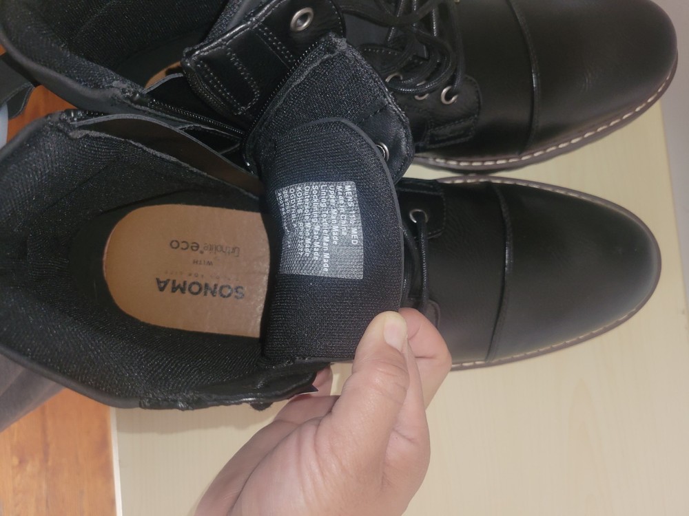 US Shoe Size:11.5Brand:SonomaType:CasualDepartment:MenVintage:NoOutsole Material:RubberUpper Material:LeatherCountry/Region of Manufacture:ChinaColor:BlackStyle:Boat ShoeCustomized:NoFeatures:ComfortOccasion:Casual
