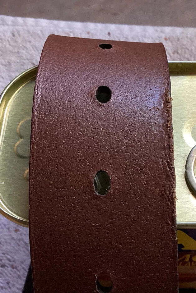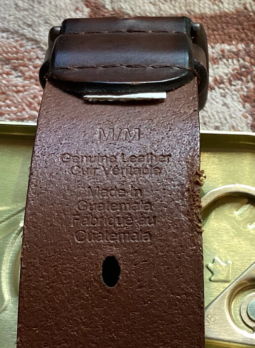 Mens Casual Jeans Genuine Leather Dark Brown Belt Size M From the buckle to the fifth hole from end was 37”. The width of the belt is 1.5”. Made in Guatemala. There are two spots where the back of the belt is ruff on the edge. See pictures. Looks like the belt loop was a little tight. Have questions, please write. Shipped USPS Ground Advantage