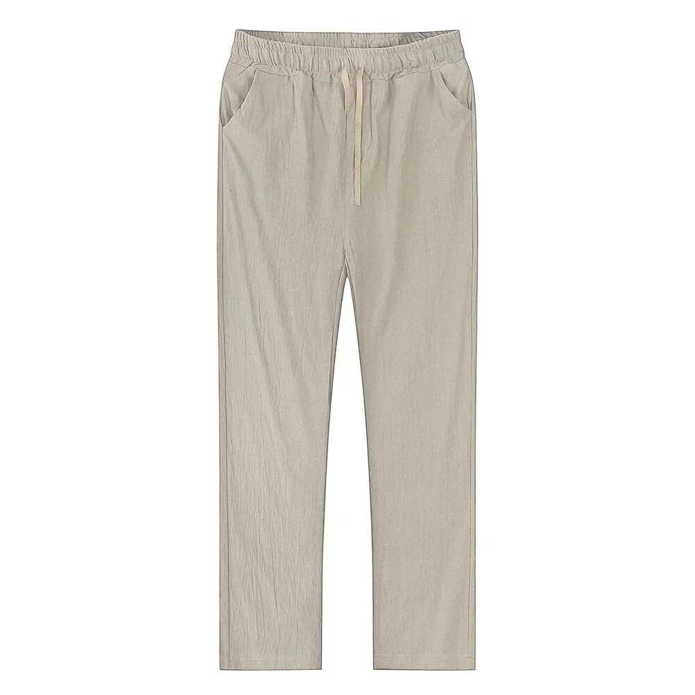 Product Description MEN'S COTTON LINEN CASUAL PANTS — BREATHE EASY, MOVE FREELY Stay comfortable and stylish this season with these Men’s Cotton Linen Pants , perfect for casual wear, fitness activities, or laid-back streetwear style. 🍂 Designed for Comfort in Autumn Crafted from a breathable cotton and linen blend , these pants offer excellent airflow and a soft feel — keeping you cool and comfortable during cooler autumn days. 👖 Modern Casual Look Featuring a straight-leg cut and a regular fit , these trousers pair effortlessly with your favorite shirts, sweaters, or jackets for a versatile everyday look. 🧵 Easy Wear An elastic waist with adjustable drawstring ensures a secure yet comfortable fit, perfect for on-the-go lifestyles. Key Features: Material: Cotton & Linen Blend Length: Full Length Fit: Regular Fit Waist: Elastic Waist with Adjustable Drawstring Style: Casual / Streetwear / Fitness Season: Ideal for Autumn Wear Fabric: Soft and breathable broadcloth for all-day comfort Perfect For: ✔️ Casual daily wear ✔️ Fitness & light workout ✔️ Streetwear & modern style outfits ✔️ Relaxing at home