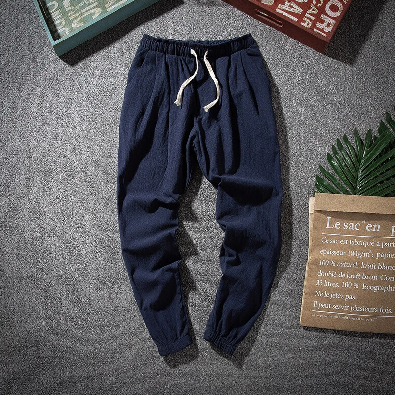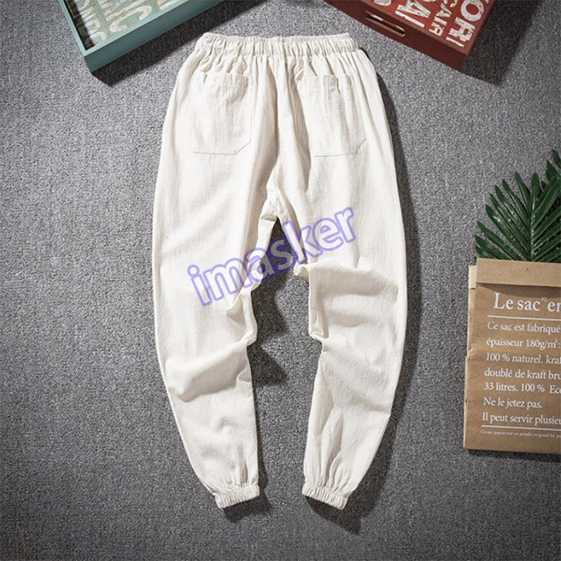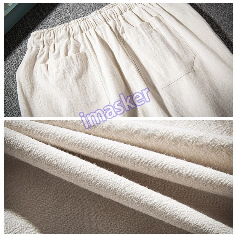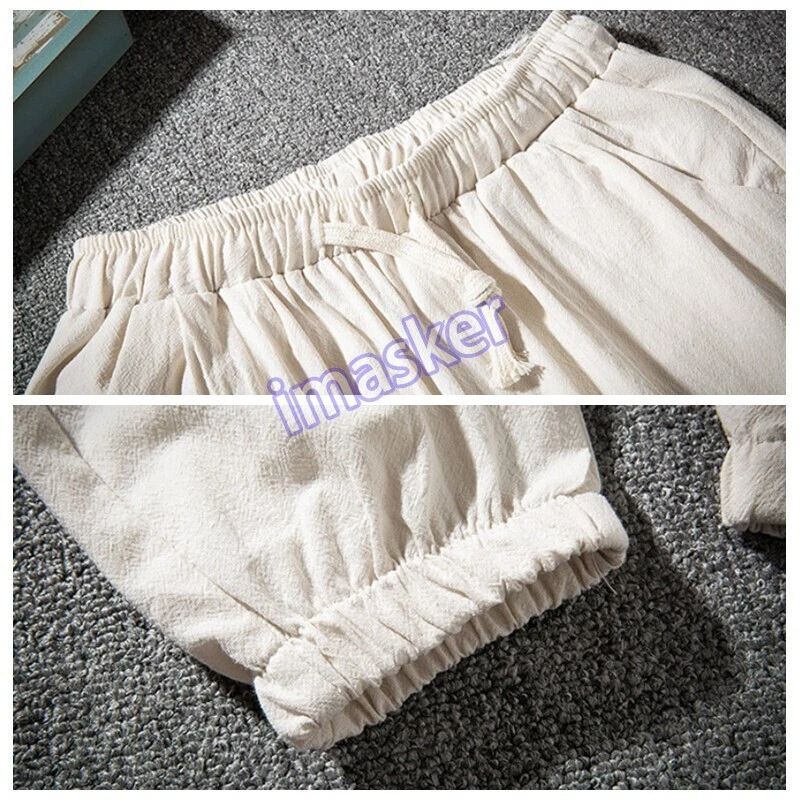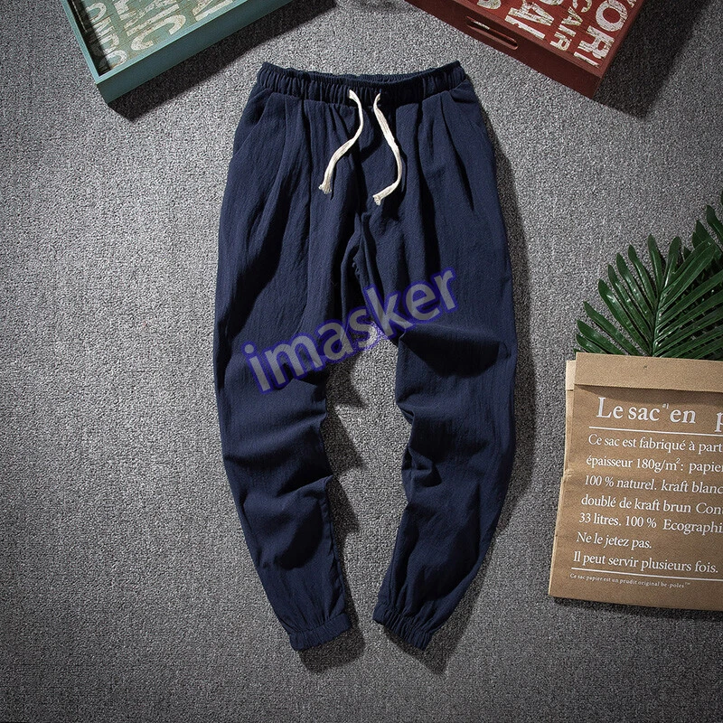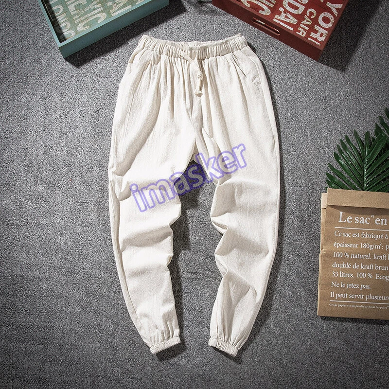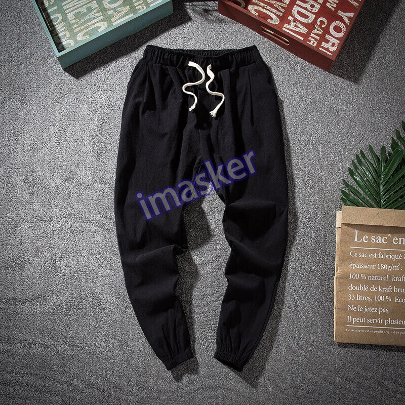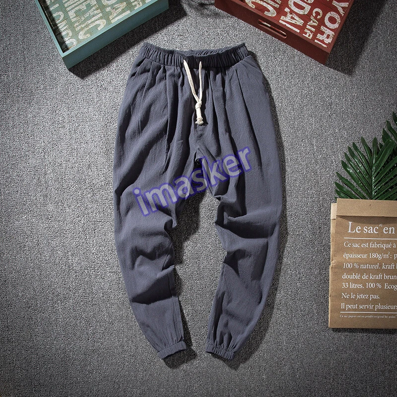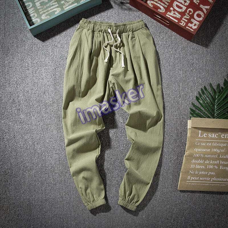 $ 5.53Mens Linen Cotton Tapered Pants Pockets Trousers Summer Baggy Bottoms Retro Soft