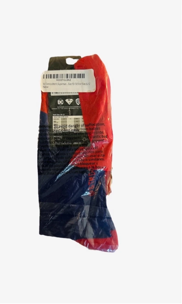 NWT - Men's DC Comics Superman Adult Crew Socks Size 8-12 Red Blue