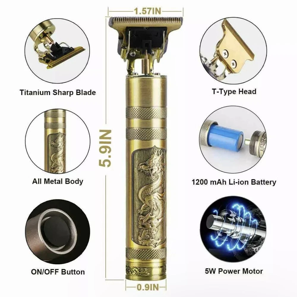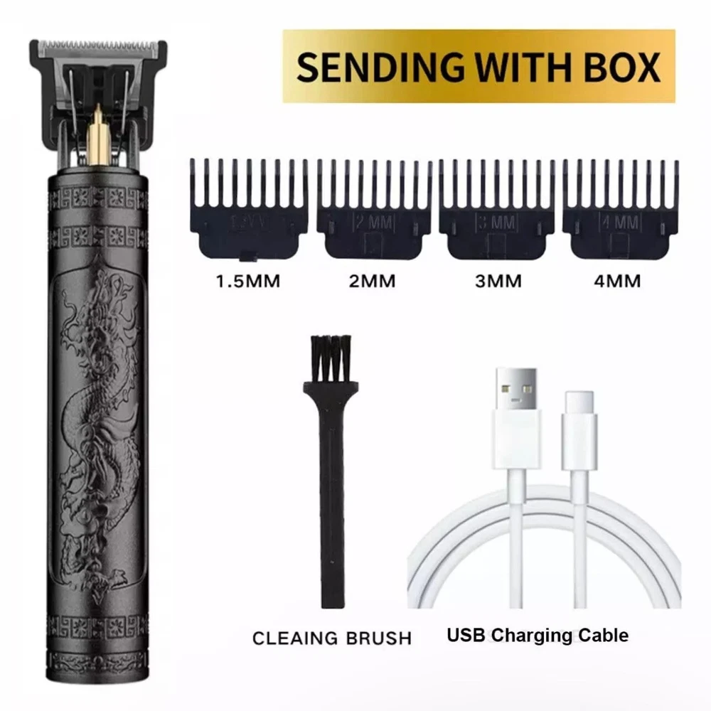 Hair Clippers and Beard Trimmer for Men – Professional Grooming Kit Achieve the perfect haircut and beard trim with this powerful, easy-to-use hair clipper and trimmer. Designed for both professional and home use, it features a high-performance motor, low vibration, and an ultra-quiet operation, making it ideal for creating various hairstyles with precision. The cordless design allows for easy maneuverability, whether you’re at home, work, or traveling. Key Features: • R-Shaped Sharp Angle Design: The trimmer’s R-shaped design prevents skin irritation while providing a sharp, wear-resistant blade for smooth cuts. • Ergonomic & Non-Slip Handle: The clipper features an exquisite, comfortable handle with carved patterns, making it easy to grip for a precise trim. The low noise operation ensures a quiet, pleasant grooming experience. • Powerful & Sharp Performance: Quickly captures and cuts hair evenly, saving time and effort. The waterproof design allows for easy cleaning under running water. • Low Noise Operation: Enjoy a quiet grooming experience without disturbing those around you, perfect for early mornings or when your baby is sleeping. • Perfect Gift: With its sleek design and quality craftsmanship, this hair clipper makes an excellent gift for any man – ideal for your boyfriend, husband, father, or friend. Specifications: • Color: Gold, Black • Power: 5W • USB Cable: 5V • Battery: 1200mAh Li-ion Battery • Operating Time: Up to 2 hours • Charge Time: 2 hours • Charging Method: USB Charging Package Includes: • 1 x Hair Clipper • 1 x USB Charging Cable • 1 x Cleaning Brush • 1 x User Manual • 1 x Gift Box • 4 x Limit Combs Perfect for personal use or as a thoughtful gift, this hair clipper and beard trimmer will keep you looking sharp with every trim.