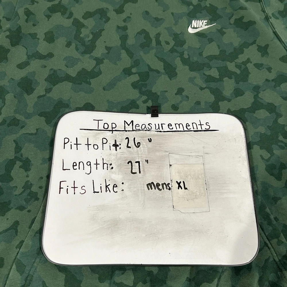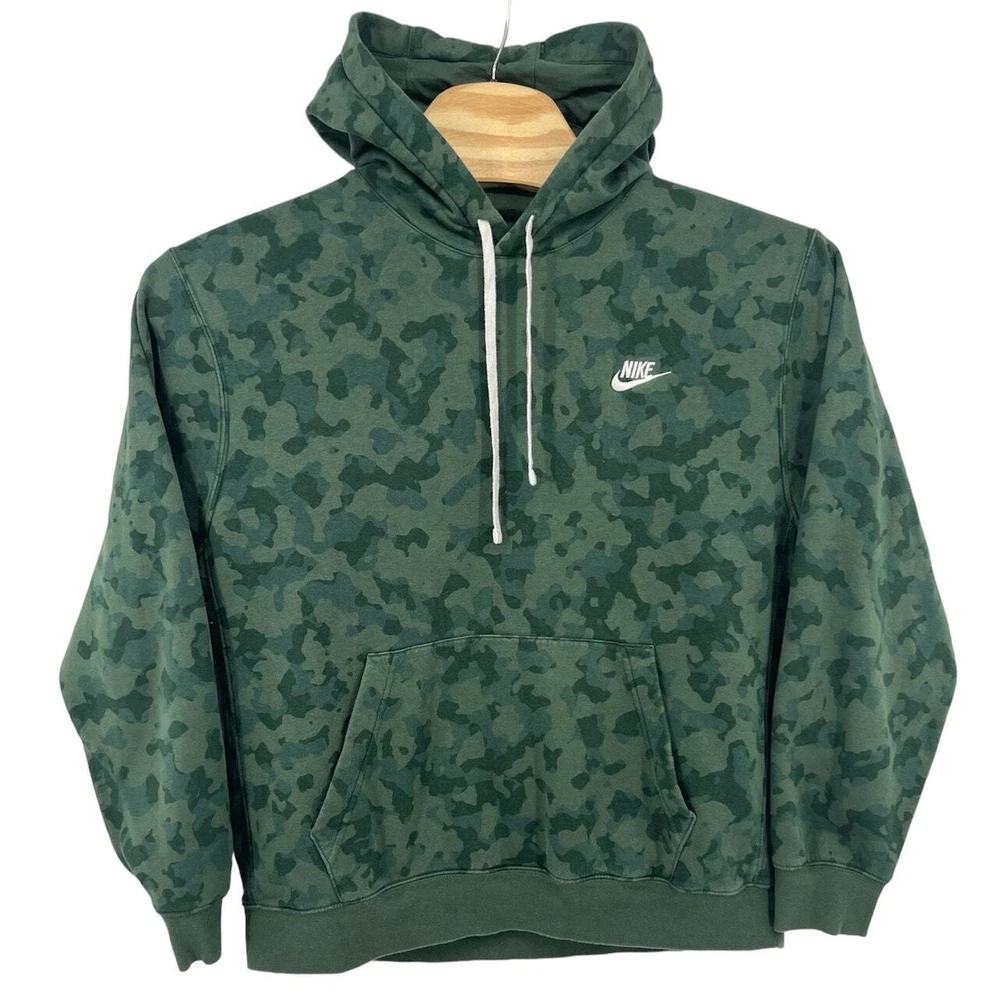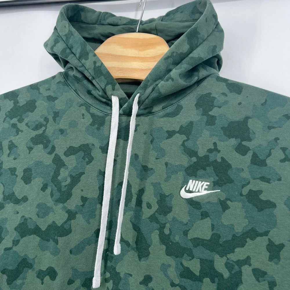 Men's Green Galactic Jade NIKE SPORTSWEAR CLUB Fleece Camo Hoodie Sweatshirt DA0055-337 pit to pit: 26" length: 27" Fit's like: men's XL Item is in good used condition. Look at photos to see the condition. All, if any, flaws have been pictured. See the last photo for measurements along with my suggestion of what it fits like. Please know which measurements fit you prior to purchasing, and don’t just rely on my suggestion. Feel free to ask any questions! ***Item is cross posted on several platforms***