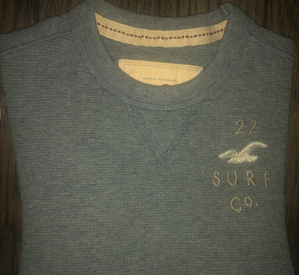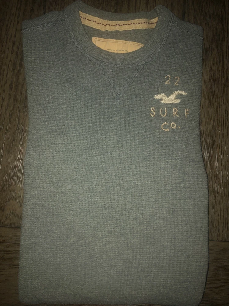 Men's Hollister Long Sleeve Gray Crewneck Thermal Shirt Size Medium All cotton Great looking gray thermal shirt Nice logo on the chest Measures about 22x27 VERY NICE SHIRT FROM SMOKE FREE HOME! FAST SHIPPING WITH TRACKING INFORMATION.