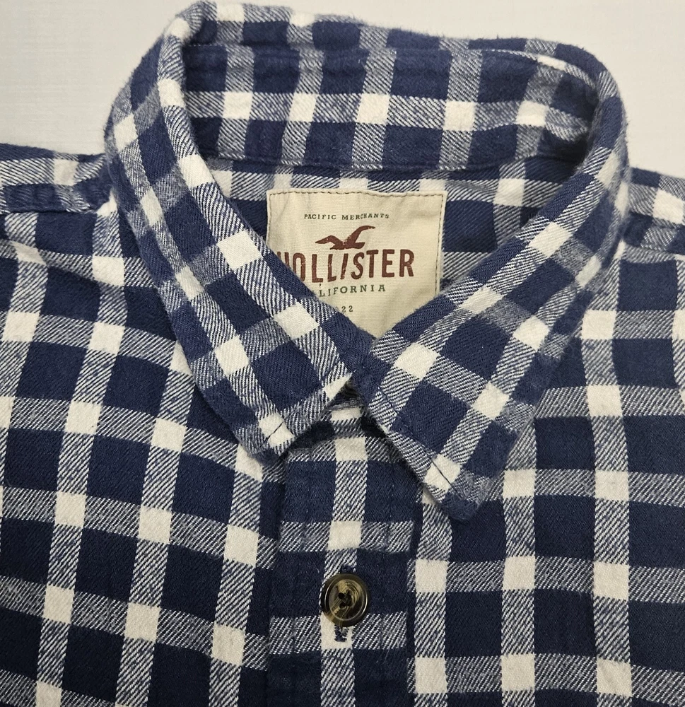 Mens Hollister Long Sleeve Plaid Flannel Button Front Shirt Size Small All cotton Great looking navy multi plaid long sleeve button up shirt Pocket with logo Excellent used condition VERY NICE SHIRT FROM SMOKE FREE HOME. FAST SHIPPING WITH TRACKING INFORMATION PROVIDED.
