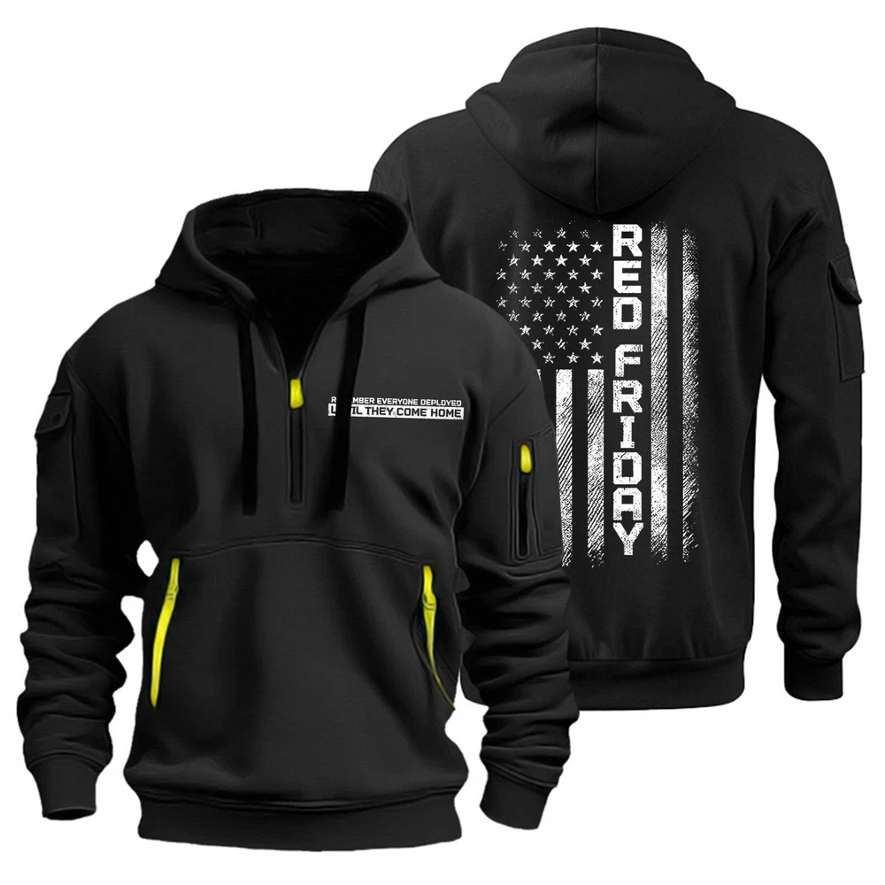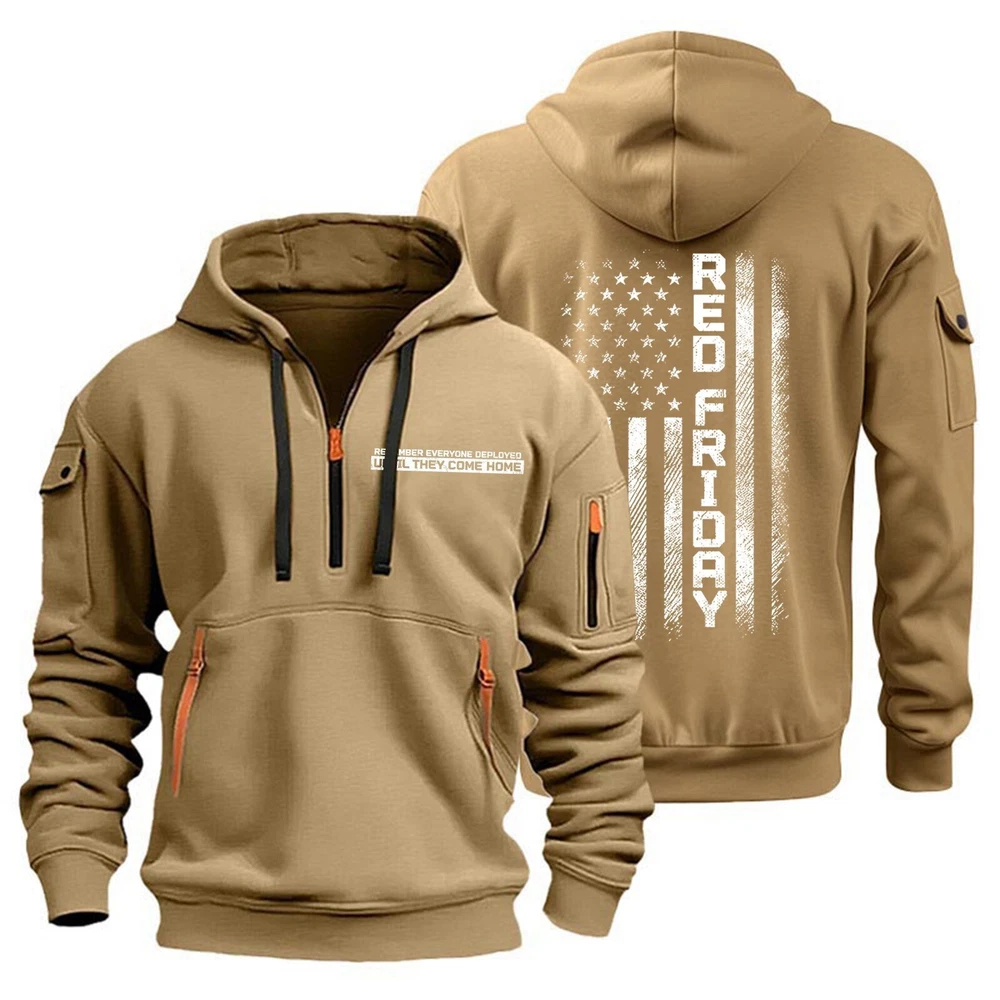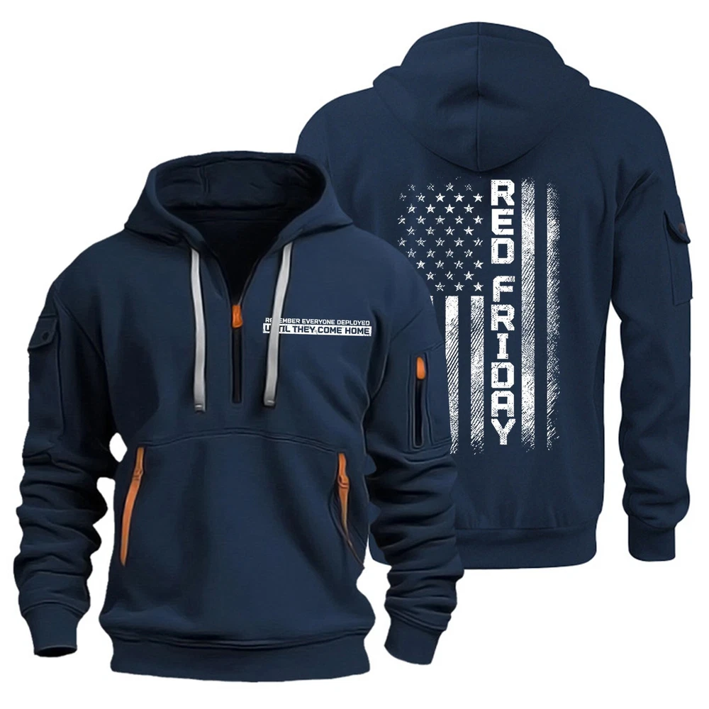 Men's Hoodies 1/4 Zip Up Pullover Flag Tactical Sweatshirt With Arm Pockets