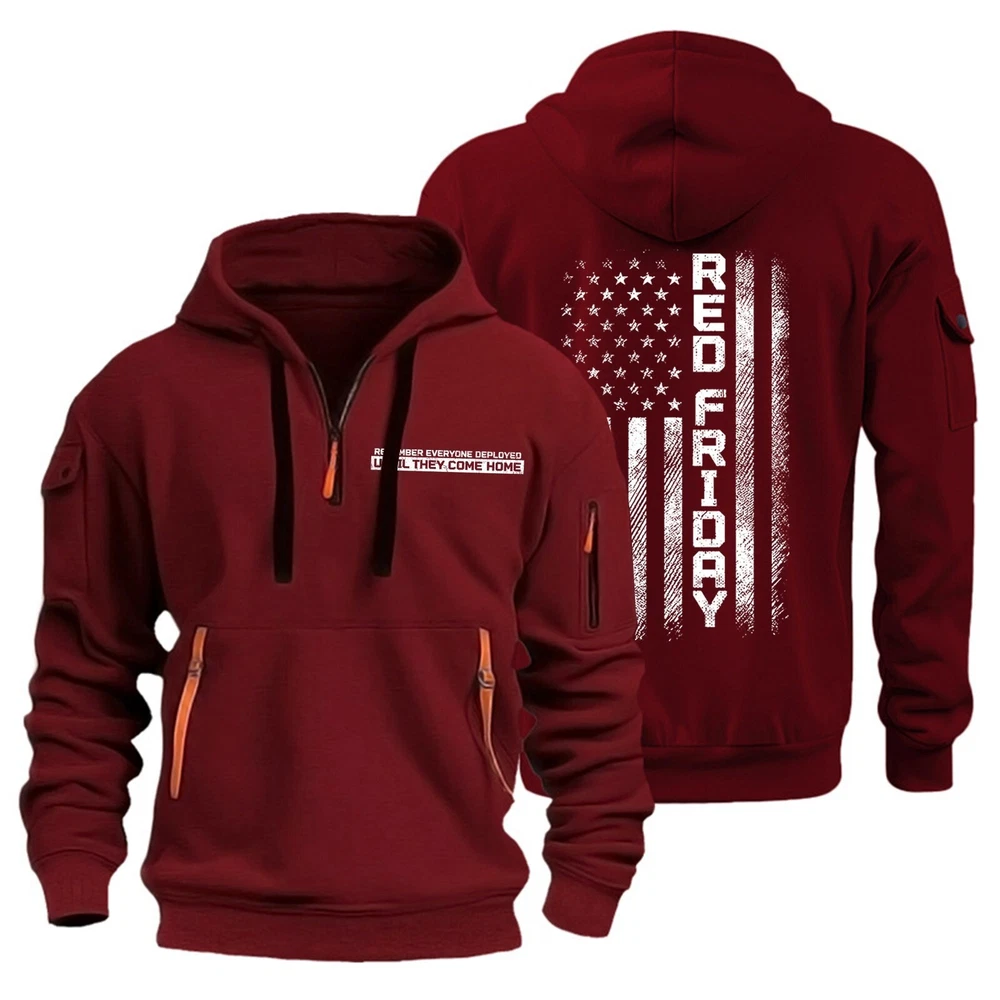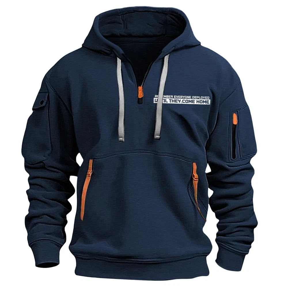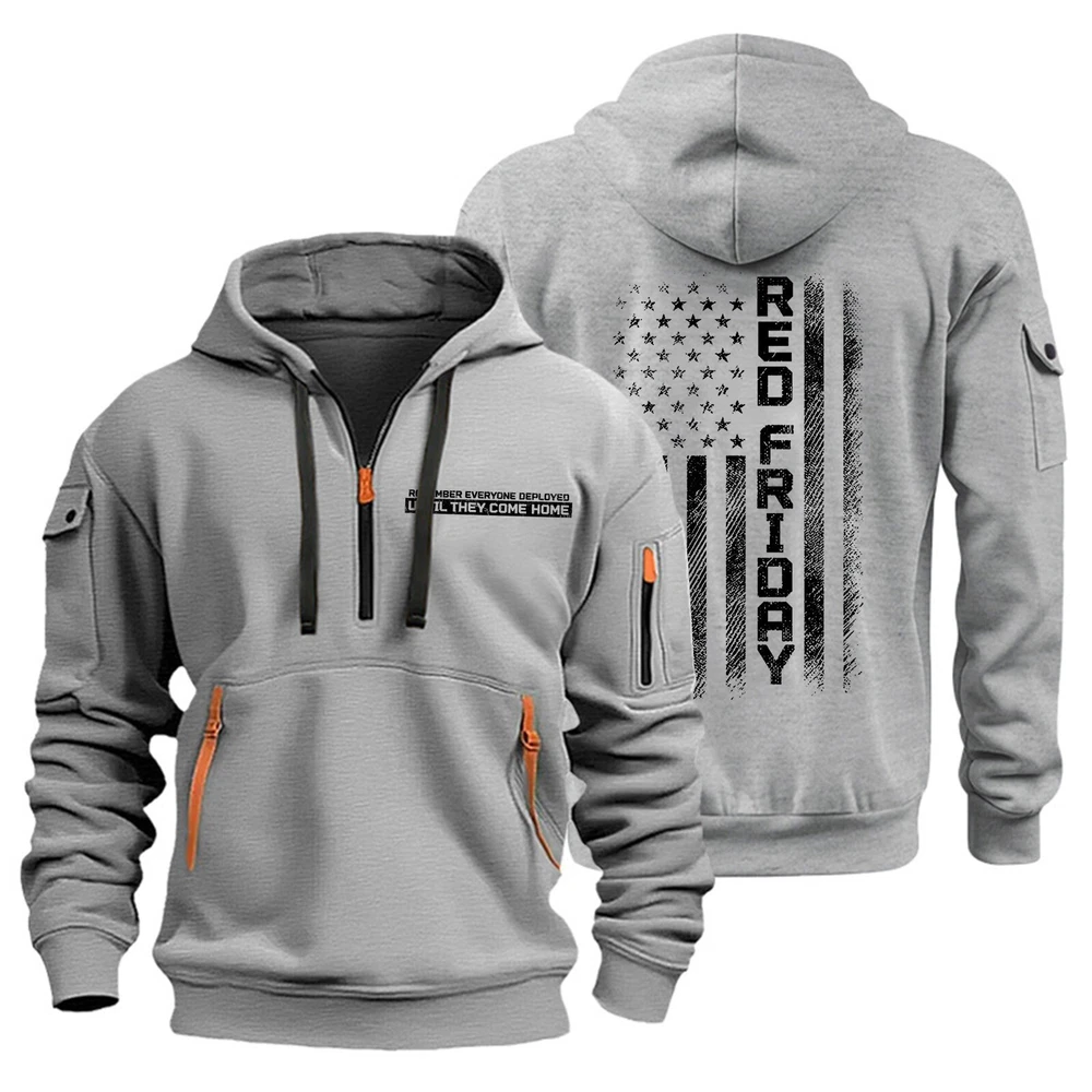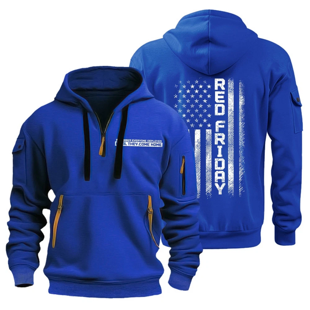 Men's Hoodies 1/4 Zip Up Pullover Flag Tactical Sweatshirt With Arm Pockets